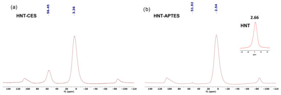 27Al CP MAS NMR spectra of (a) HNT-CES and (b) HNT-APTES.