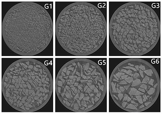 Two-dimensional CT scan images of G1–G6 models with different particle sizes.