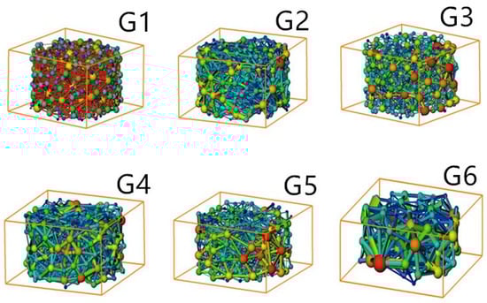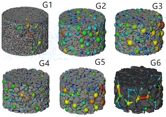 Three-dimensional pore network models of G1–G6.