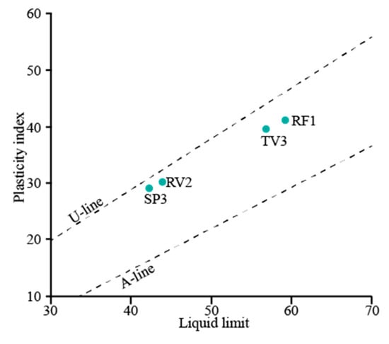 - Bhavya, K.; Nagaraj, H.B. Influence of soil structure and clay mineralogy on Atterberg limits. Sci. Rep. 2025, 15, 15459. [Google Scholar] [CrossRef] [PubMed]