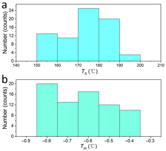 Histogram of homogenization temperature (a) and melting temperature (b) of fluid inclusions in fluorite.