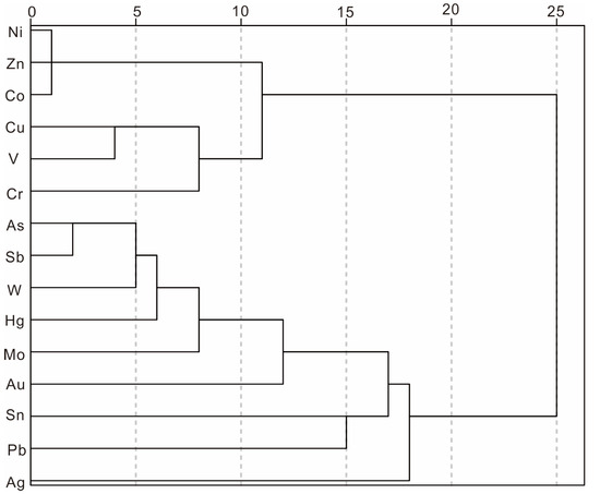 | Elements | Au | As | Sb | Hg | Ag | Sn | Co | Cr | Cu | Ni | Pb | V | Zn | Mo | W |