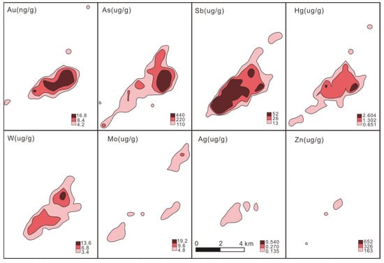 | Elements | Au | Sb | W | As | Hg | Mo | Ag | Zn |