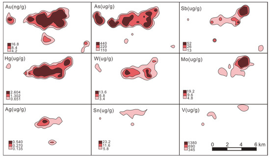 | Elements | Au | Sb | W | As | Hg | Mo | Ag | Sn |