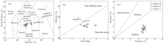 - Miyashiro, A. Volcanic rock series in island arcs and active continental margins. Am. J. Sci. 1974, 274, 321–355. [Google Scholar] [CrossRef]