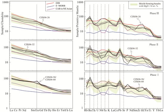 - The tholeiitic basalts from the CZK06 drill core formed during the Pliocene-Early Pleistocene shield-forming stage, recording three phases of basaltic volcanism (Phases I to III). Geochemically classified as sodium-series volcanic rocks, these basalts exhibit clear affinities with EM1-type OIBs. Notably, their δ26Mg values (−0.420‰ to −0.150‰) span a substantially wider range relative to the N-MORB.