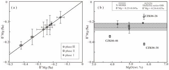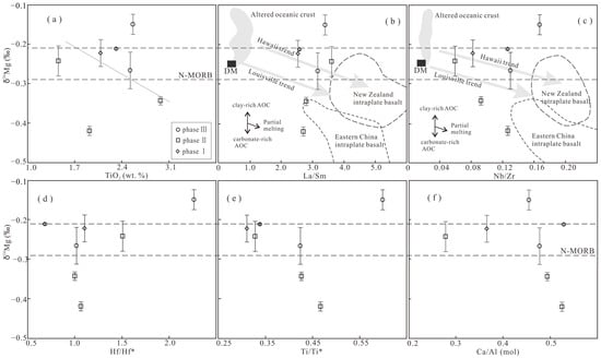 - Huang, J.; Li, S.G.; Xiao, Y.; Ke, S.; Li, W.Y.; Tian, Y. Origin of low δ26Mg Cenozoic basalts from South China Block and their geodynamic implications. Geochim. Osmochimica Acta 2015, 164, 298–317. [Google Scholar] [CrossRef]