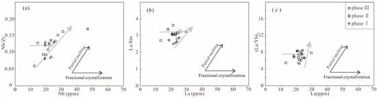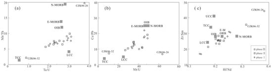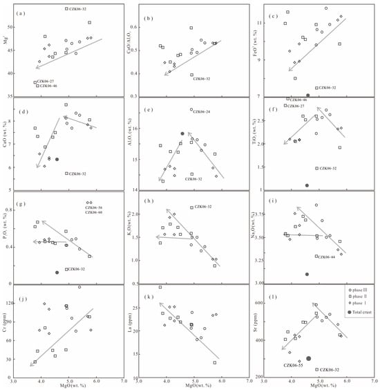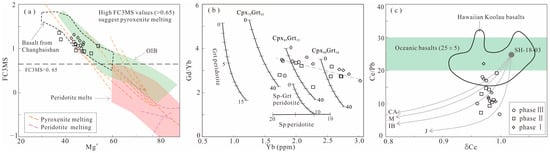 - The compositions of these tholeiitic basalts are primarily controlled by source region characteristics and partial melting degree, with minor additional influences from fractional crystallization and crustal contamination. During magmatic differentiation, fractional crystallization of Ti-rich clinopyroxene, P-rich apatite, and plagioclase is notably prominent, showing a progressively intensifying trend from Phase I to III.