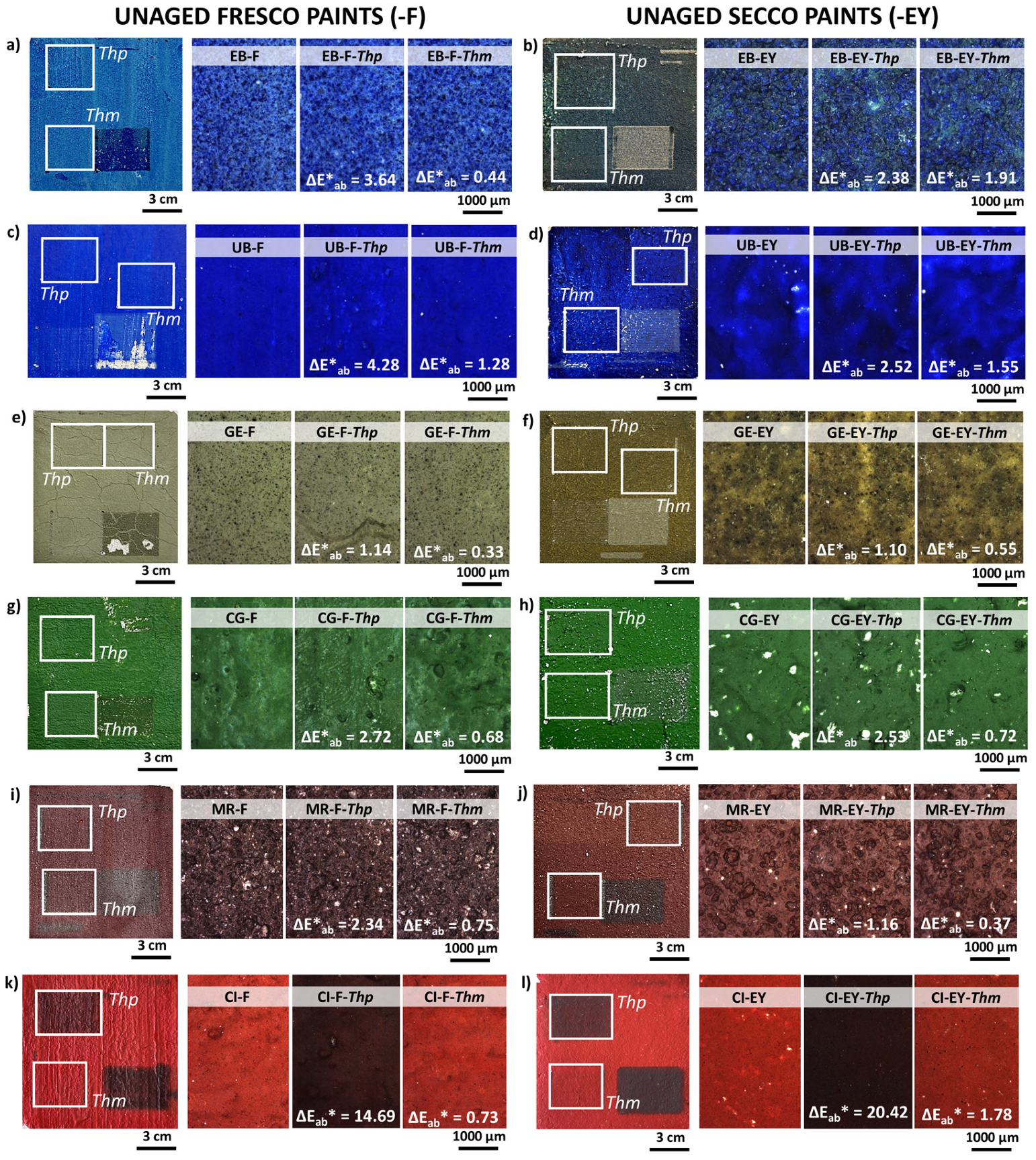 | Pigment Nature | Pigment ID | Thp | Unaged Samples | Thm | Aged Samples | Thc | ||||||