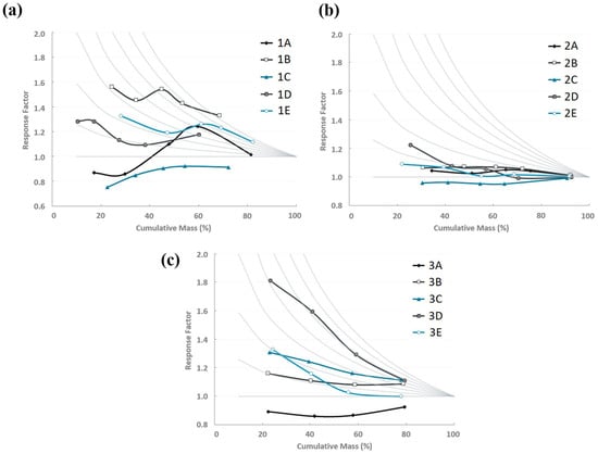 Response factor plots for the bulk samples of sites, (a) 1, (b) 2, and (c) 3.