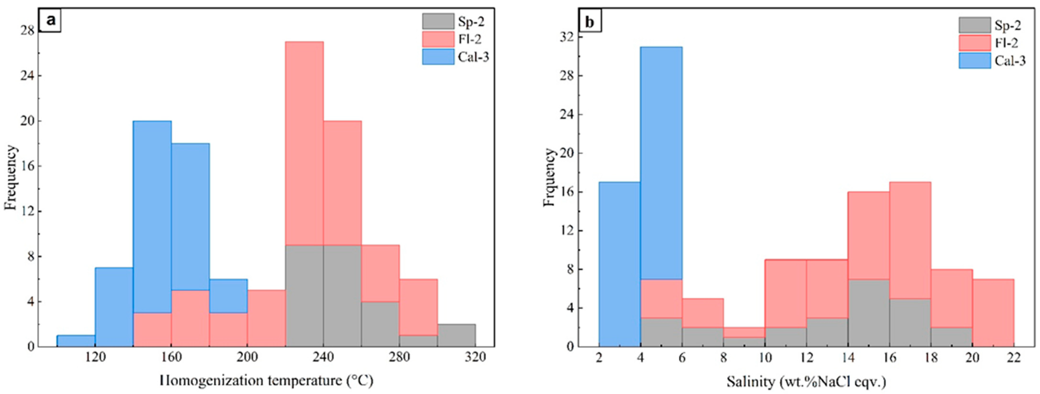 6.1. Microthermometric Constraints on the Nature and Evolution of Ore-Forming Fluids