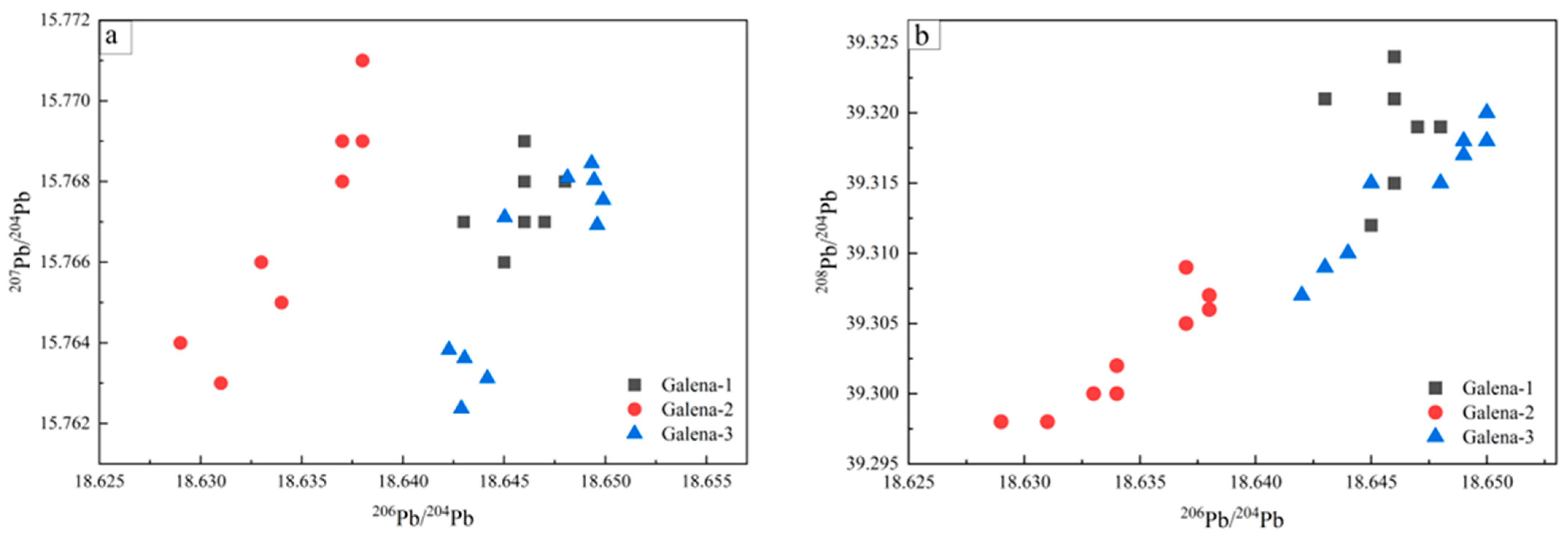 | S-2 | Galena-3 | 39.318 | 0.001 | 15.768 | 0.002 | 18.649 | 0.001 | |