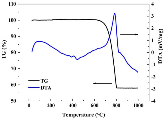 The TG/DTA curve was acquired with a STA 449 F5 simultaneous thermal analyzer (Netzsch GmbH, Selb, Germany) at temperatures ranging from 30 to 1000 °C, with a heating rate of 10 °C/min in air.