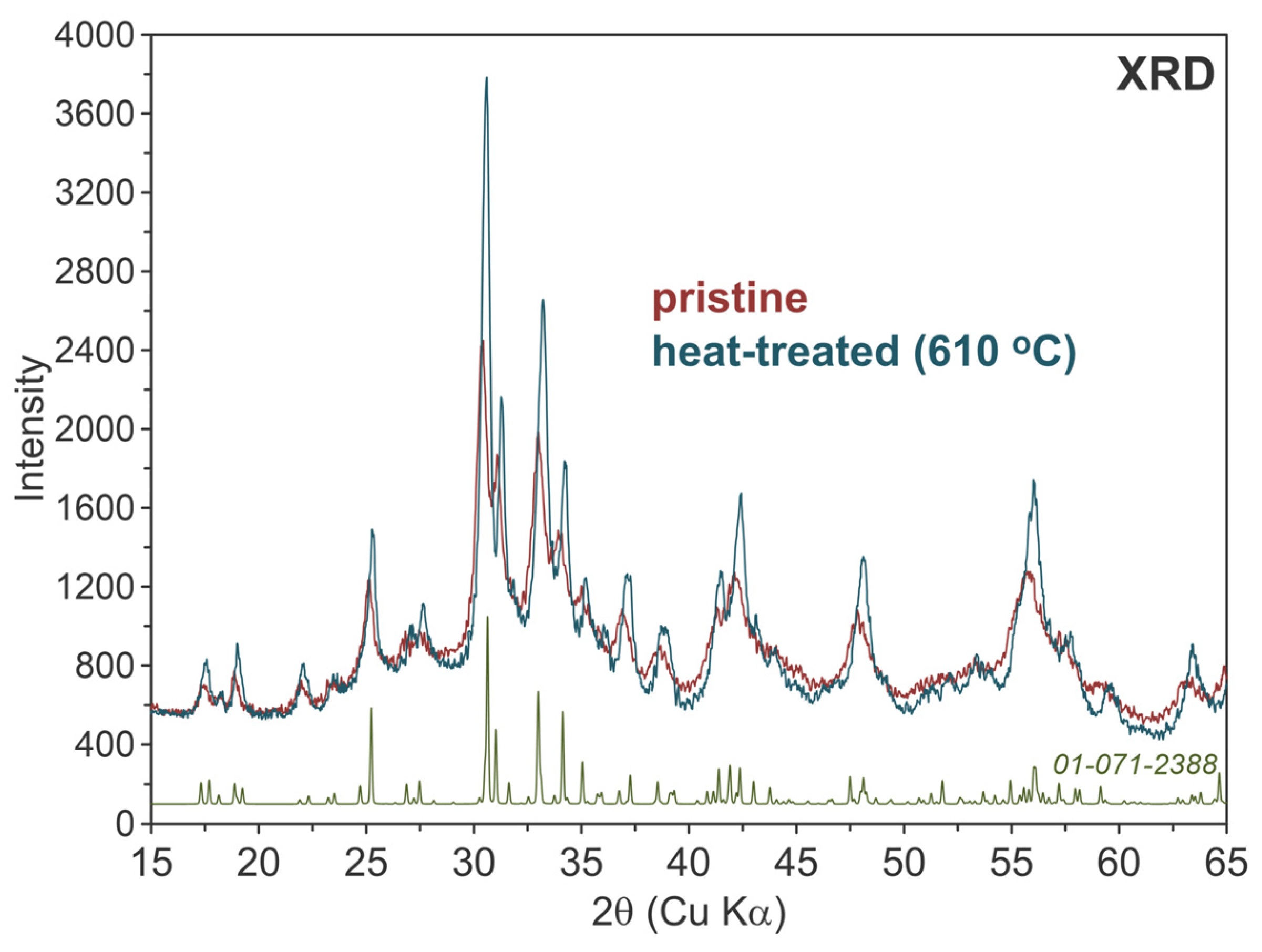 - Bonazzi, P.; Menchetti, S. Structural variations induced by heat treatment in allanite and REE-bearing piemontite. Am. Mineral. 1994, 79, 1176–1184. [Google Scholar]