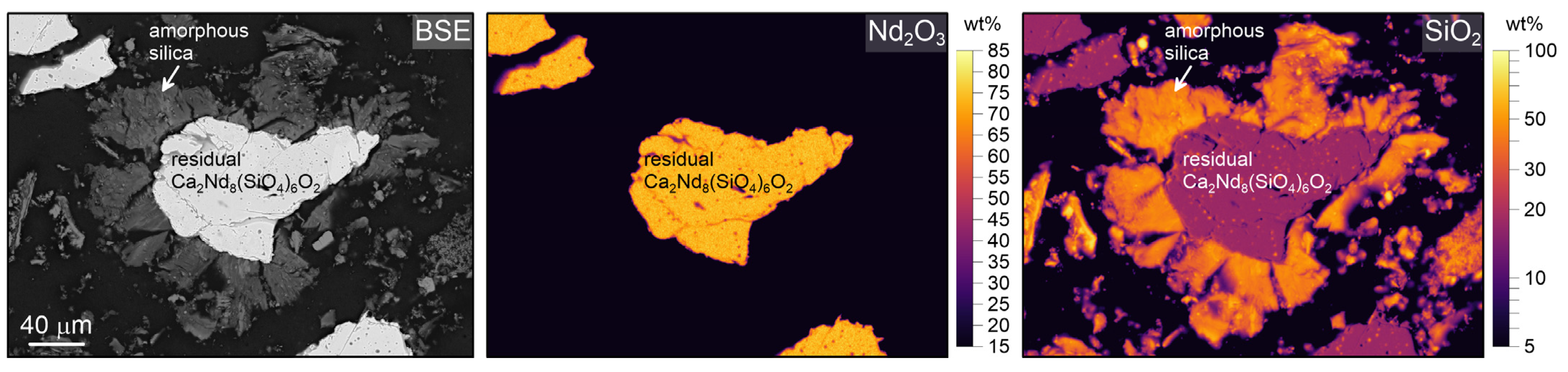 3.2. Acid Treatment of Neodymium Disilicate and Orthosilicate