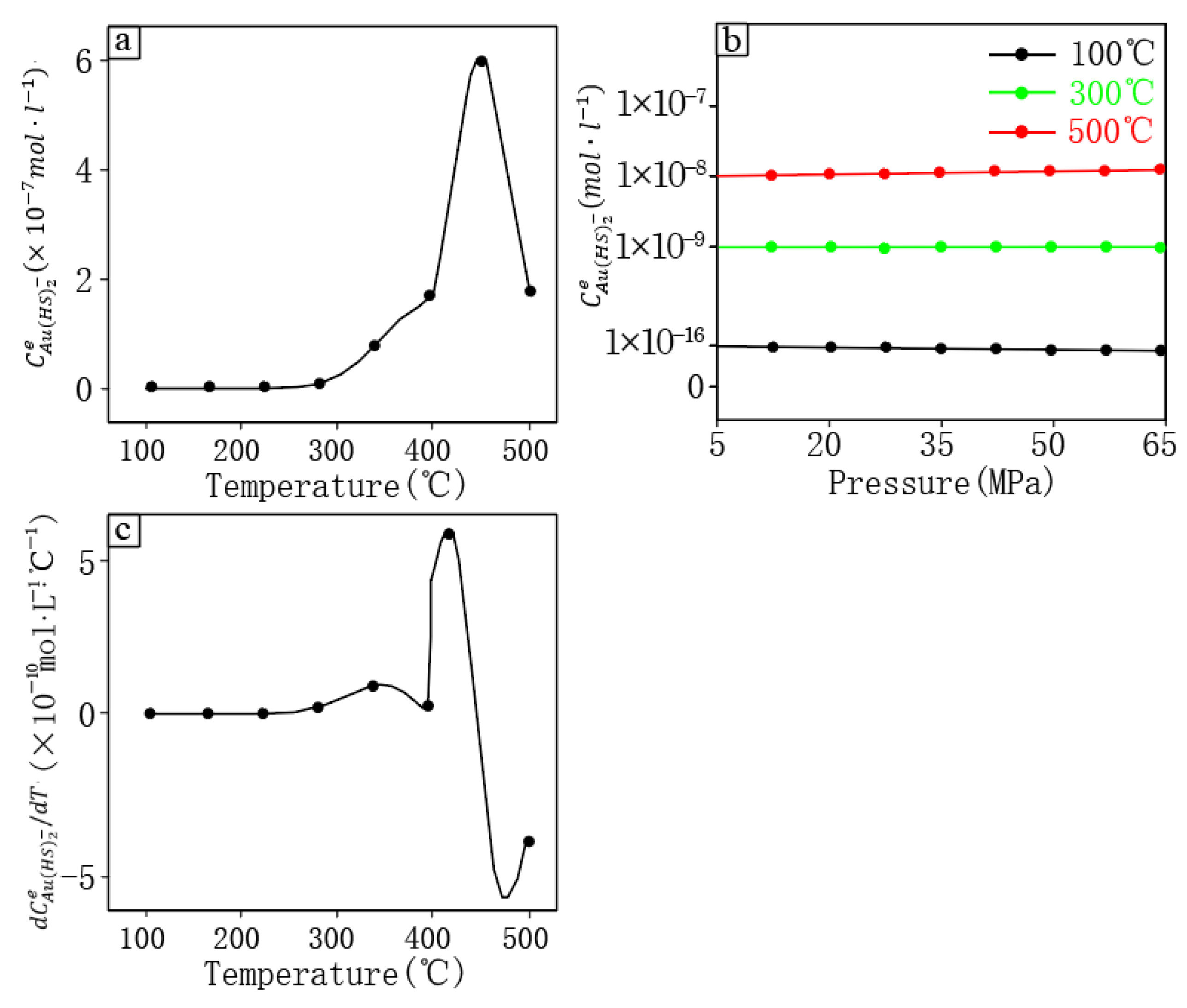- Benning, L.G.; Seward, T.M. Hydrosulphide complexing of Au(I) in hydrothermal solutions from 150–400 °C and 500–1500 bar. Geochim. Cosmochim. Acta 1996, 60, 1849–1871. [Google Scholar] [CrossRef]