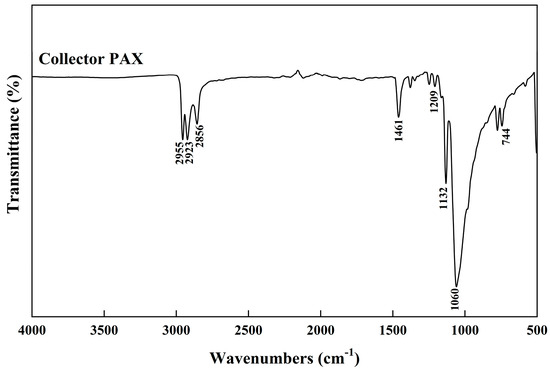 49. Zhang, Y.; Cao, Z.; Cao, Y.; Sun, C. FTIR studies of xanthate adsorption on chalcopyrite, pentlandite and pyrite surfaces. J. Mol. Struct. 2013, 1048, 434–440. [Google Scholar] [CrossRef]
