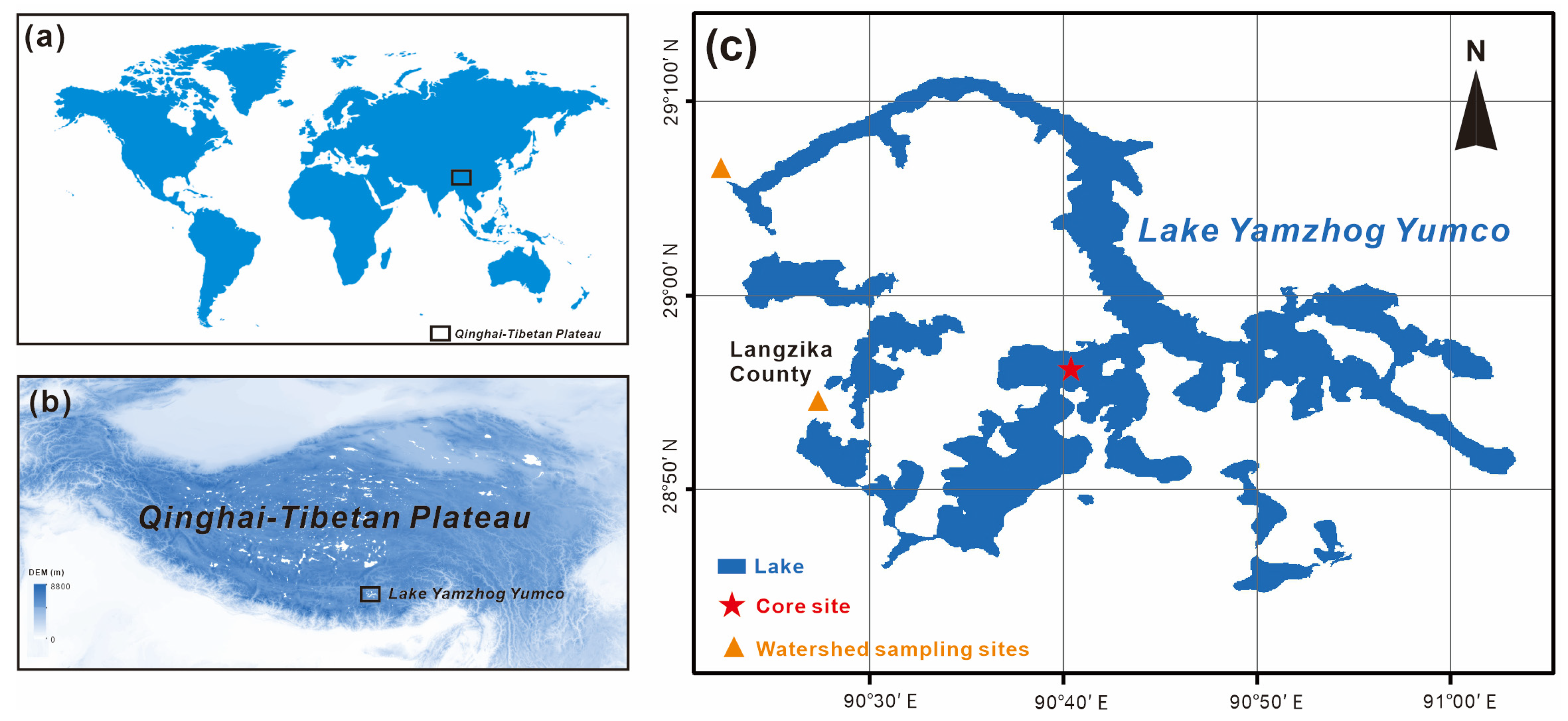 - Yu, L.; Cheng, Y.; Wang, B.; Shi, P.; Duan, K.; Dong, Z. Climate and vegetation codetermine the increased carbon burial rates in Tibetan Plateau lakes during the Holocene. Quat. Sci. Rev. 2023, 310, 108118. [Google Scholar] [CrossRef]