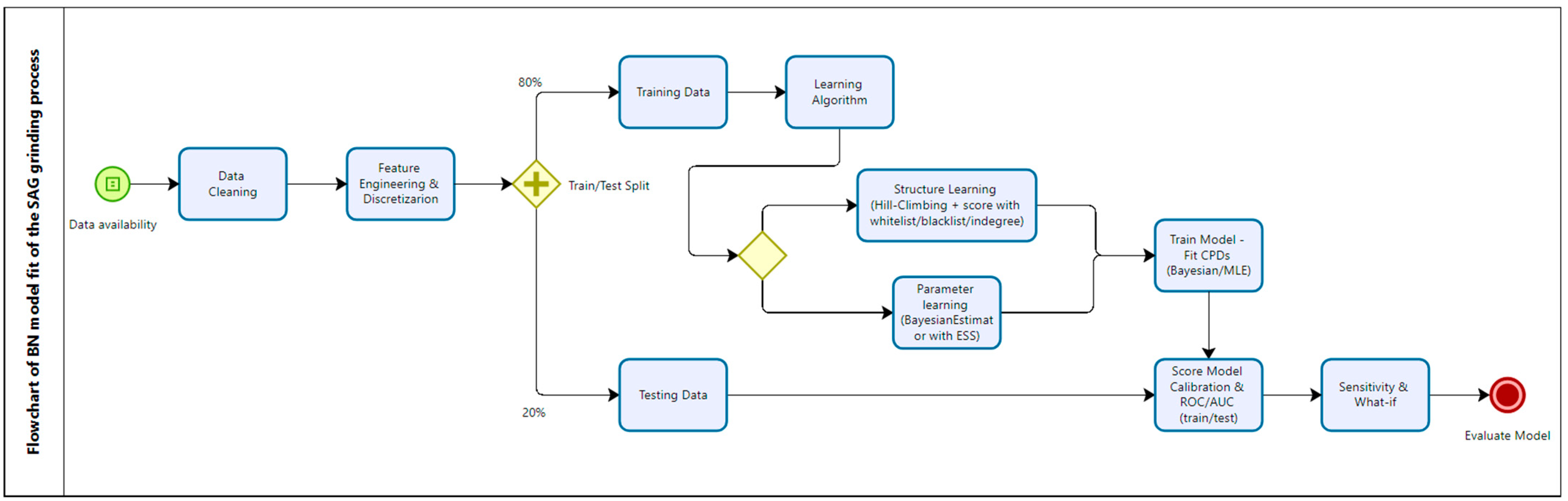 - BN for Conditional Structure and Uncertainty: Bayesian graphical models explicitly encode conditional dependencies and provide probabilistic predictions and sensitivity paths that help explain the causes of events in grinding circuits, as shown in the SAG BN case study, where the fresh ore feed rate is modeled [61].