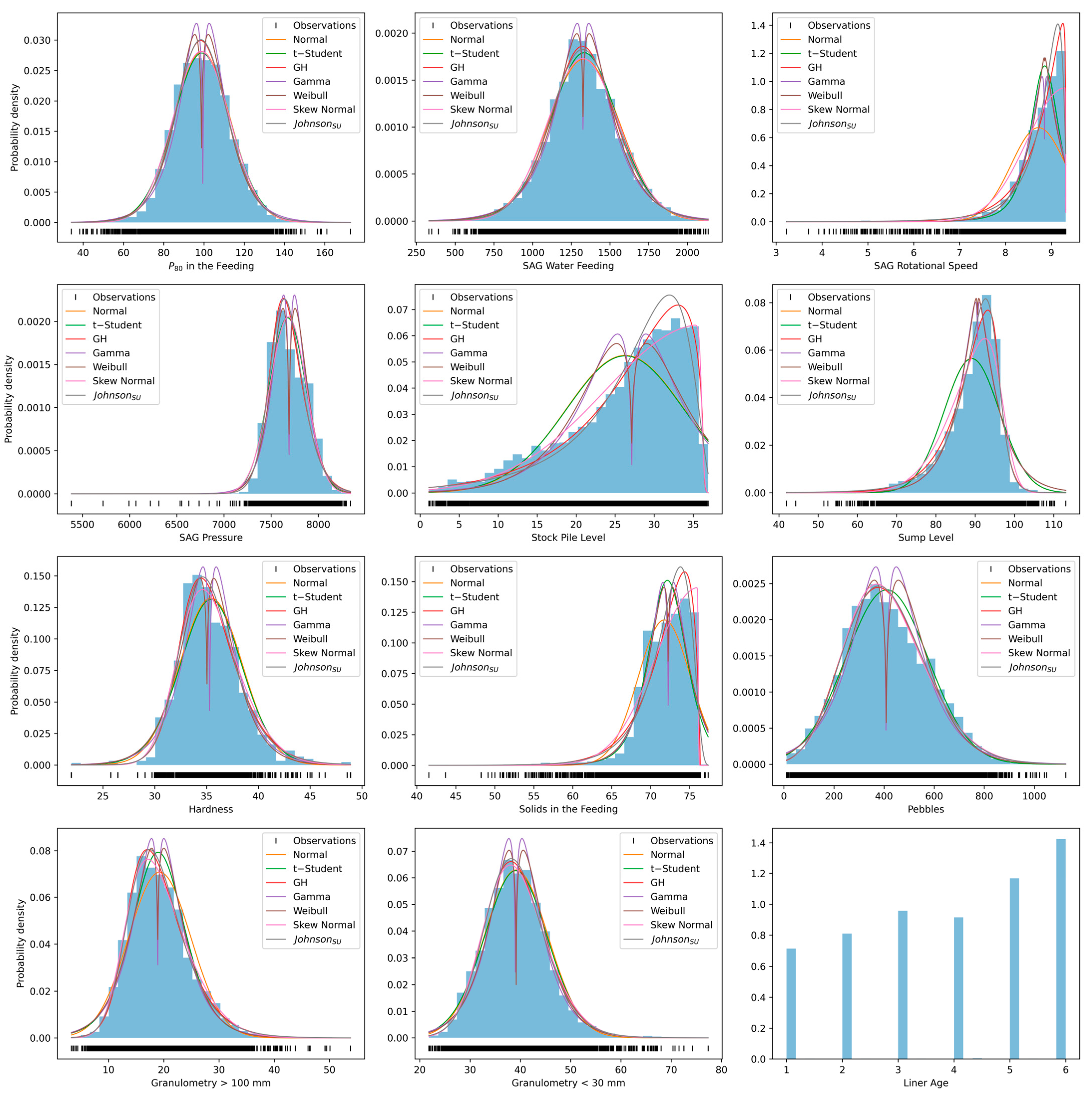 - Generate estimates of SAG production based on partial knowledge (in addition to a priori knowledge) of the operational variables considered in the study, such as liner age or mill rotation speed.