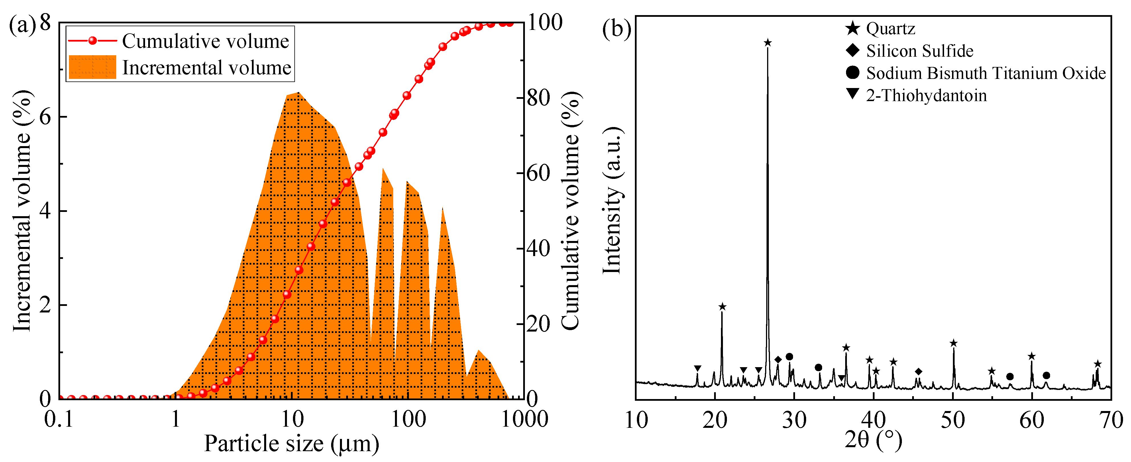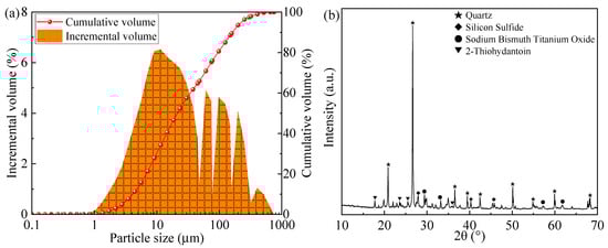 (a) Particle size distribution and (b) XRD spectrum of tailings.