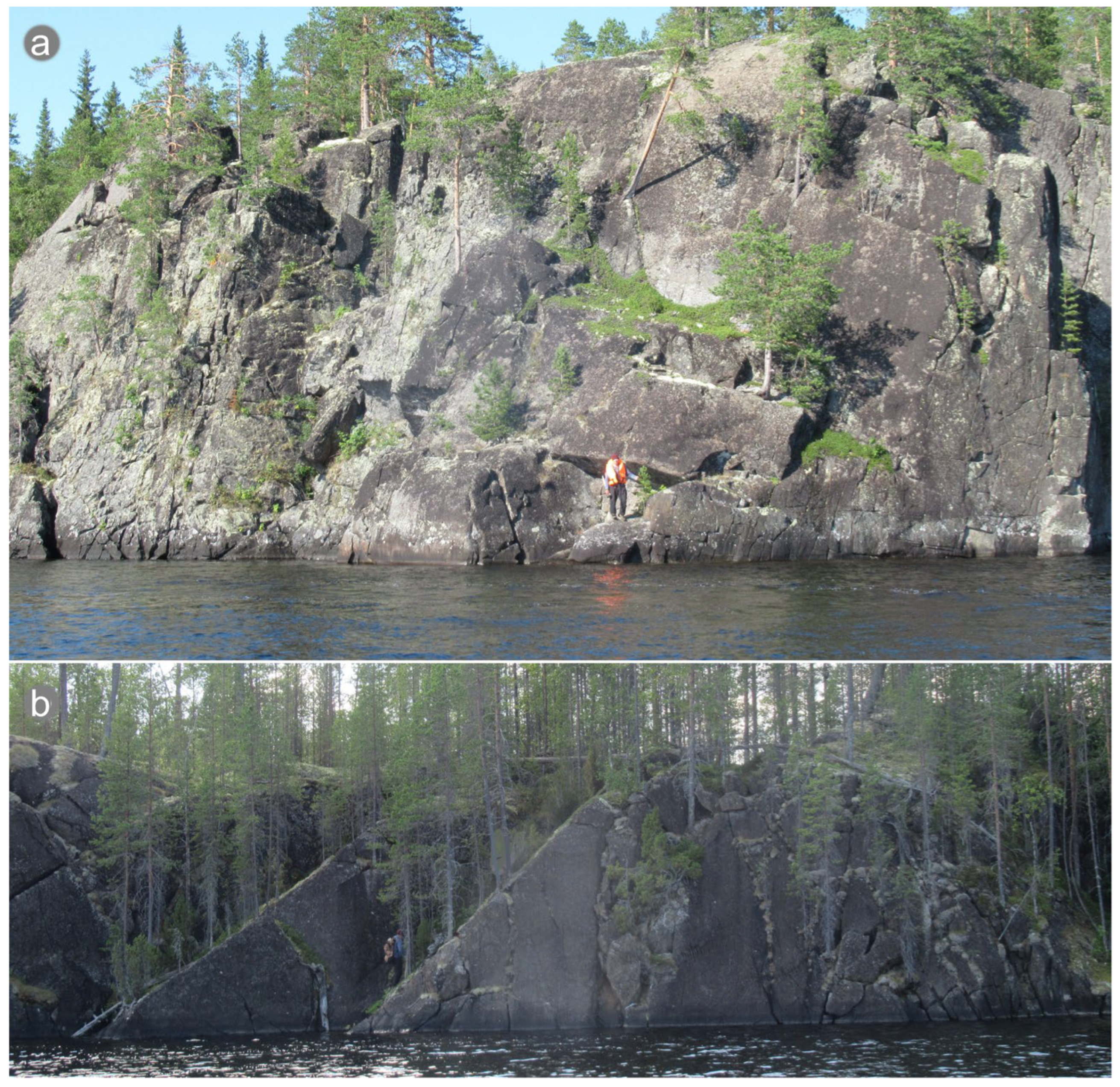 - Lindh, A.; Eskelinen, J.; Luukas, J.; Kousa, J.; Nironen, M. The Bedrock of Finland 1:200000 Map Modified from the General Map 1:1 Million; National Land Survey of Finland, Geological Survey of Finland: Espoo, Finland, 2014. [Google Scholar]