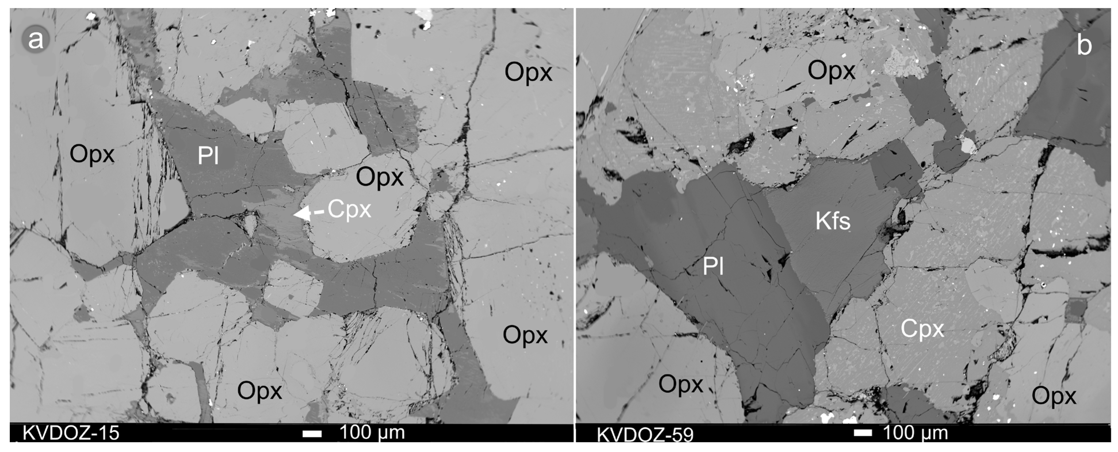 - Barkov, A.Y.; Martin, R.F.; Korolyuk, V.N.; Lobastov, B.M.; Mezhetskiy, S.A. The coronitic Perchatka layered intrusion, central Lapland—Belomorian Belt, Kola Peninsula, Russia. Can. J. Mineral. Petrol. 2025, 63, 347–369. [Google Scholar] [CrossRef]