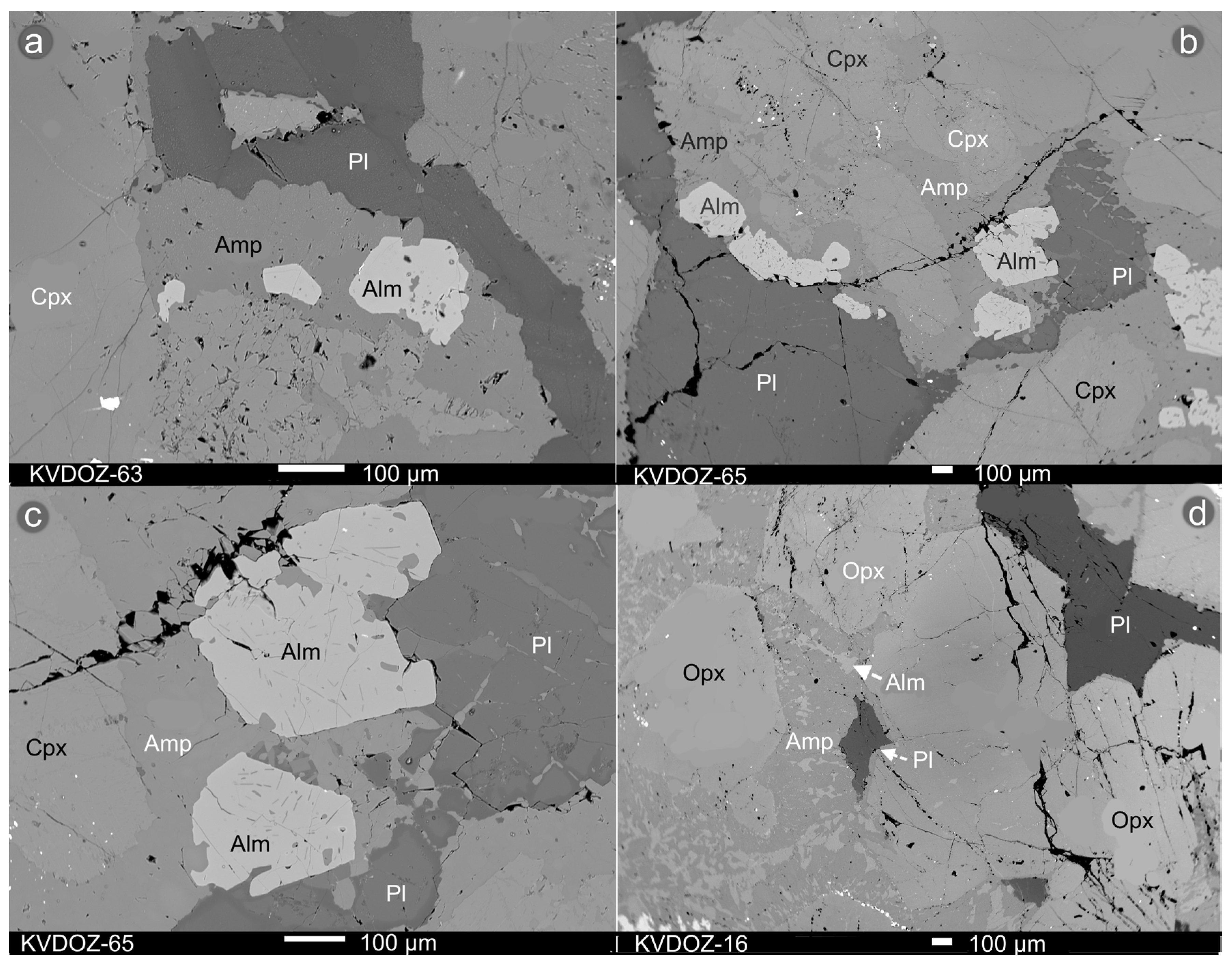 - Barkov, A.Y.; Martin, R.F.; Barkova, L.P.; Korolyuk, V.N. Coronitic associations at Gabrish in the Kovdozero layered complex in the southern part of the Lapland–Belomorian Belt, Kola Peninsula, Russia. Minerals 2025, 15, 565. [Google Scholar] [CrossRef]
