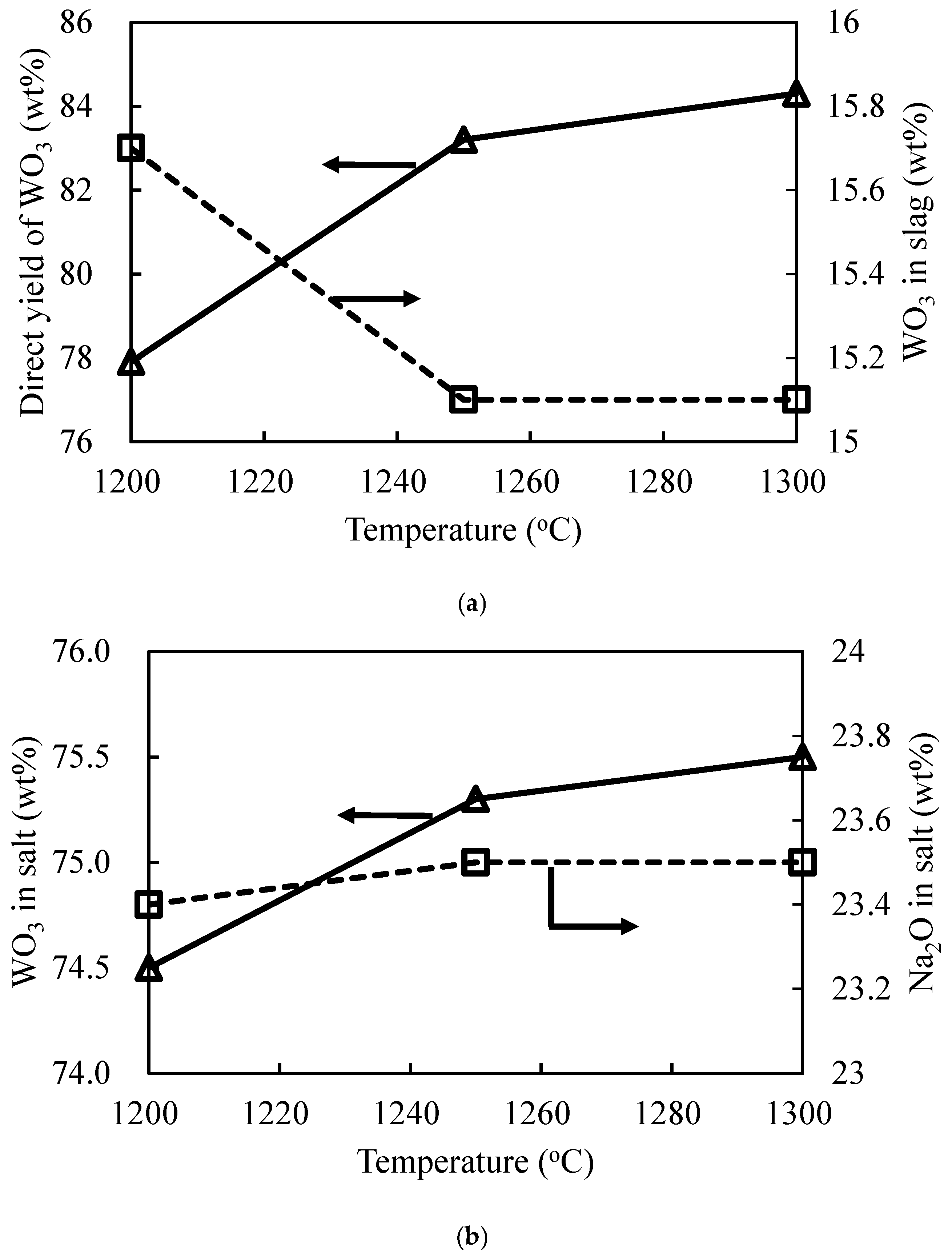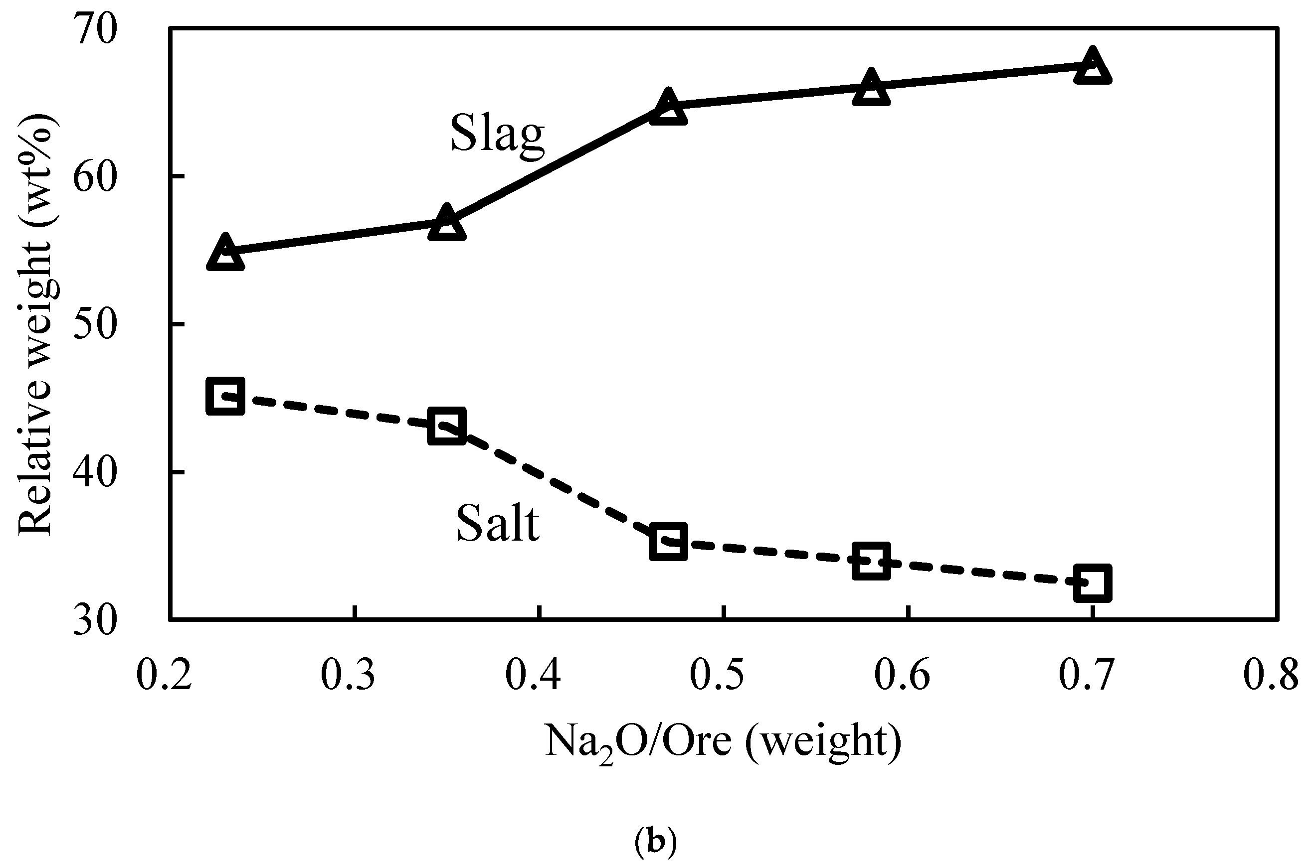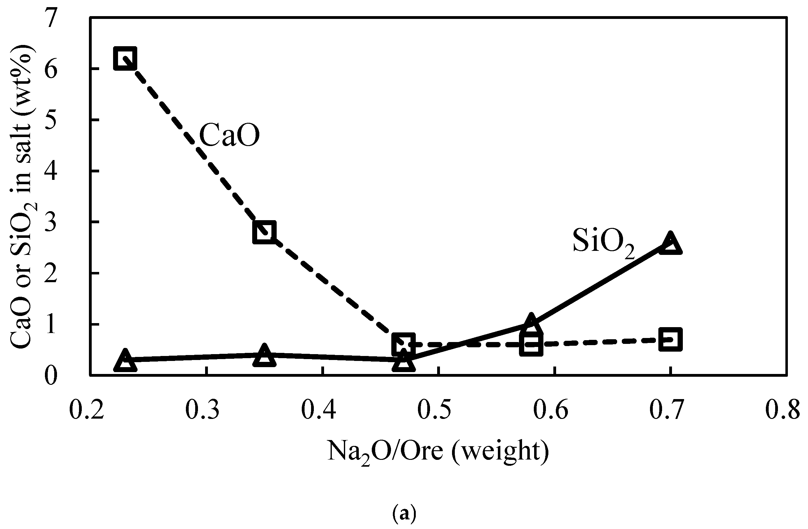 3.2.1. Effect of Na2O/Ore Mass Ratio on Direct Yield of WO3 and Salt Composition