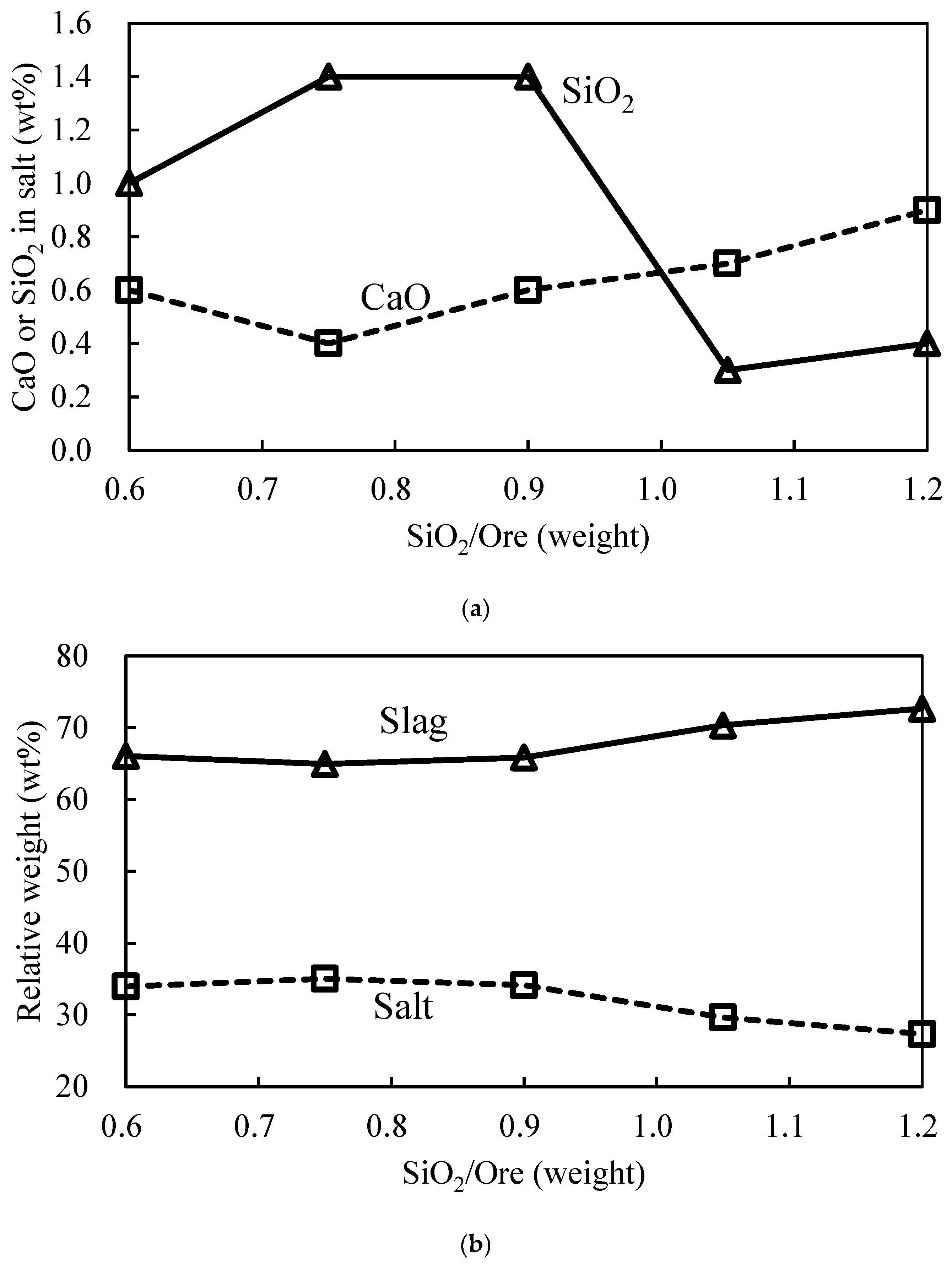 3.2.2. Effect of SiO2/Ore Mass Ratio on Direct Yield of WO3 and Salt Composition