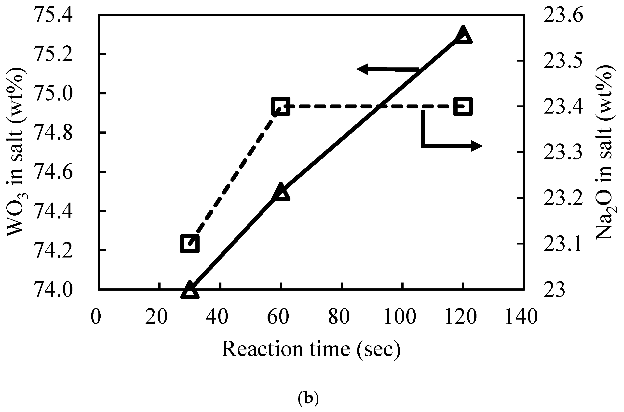 3.2.4. Effect of Reaction Time on Direct Yield of WO3 and Salt Composition