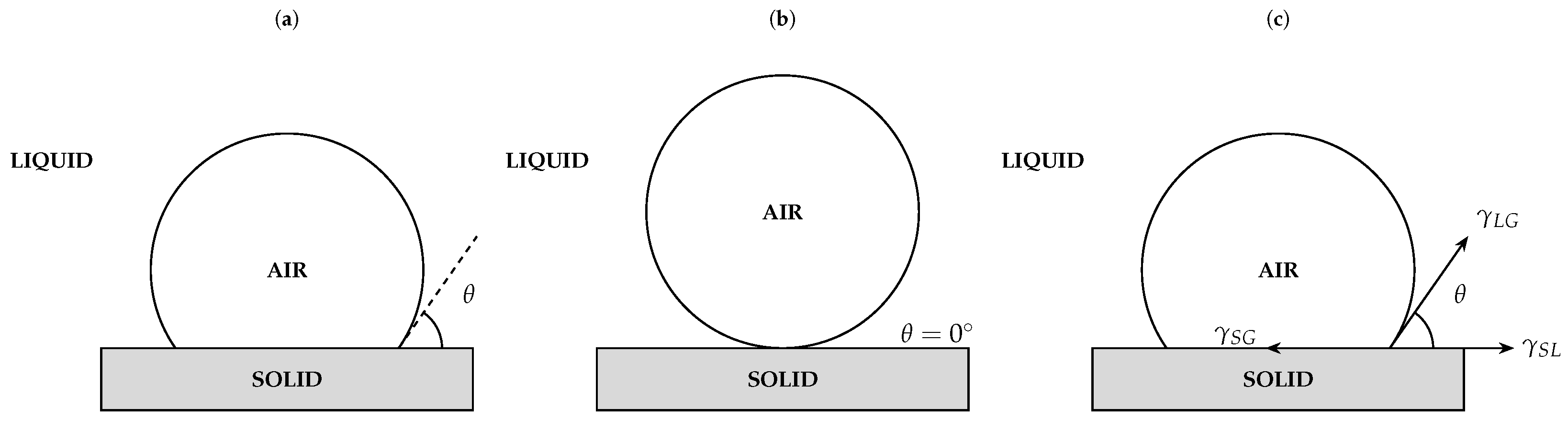 - Zisman, W.A. Relation of the equilibrium contact angle to liquid and solid constitution. In Contact Angle, Wettability and Adhesion; Fowkes, F.M., Ed.; American Chemical Society: Washington, DC, USA, 1964; pp. 1–51. [Google Scholar] [CrossRef]
