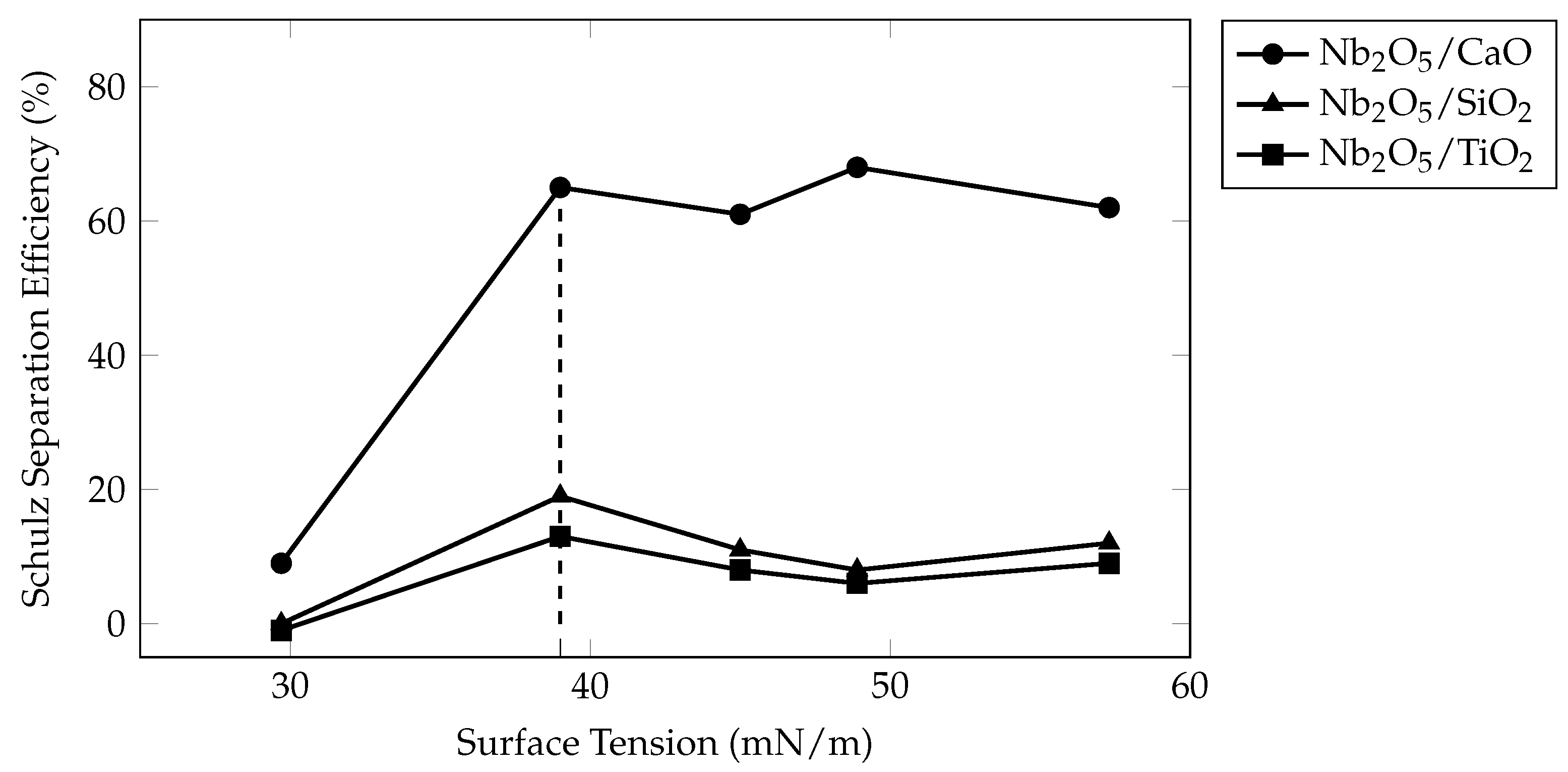- Martins, M.; Leal Filho, L.S.; Parekh, B.K. Surface tension of flotation solution and its influence on the selectivity of the separation between apatite and gangue minerals. Min. Metall. Explor. 2009, 26, 79–84. [Google Scholar] [CrossRef]