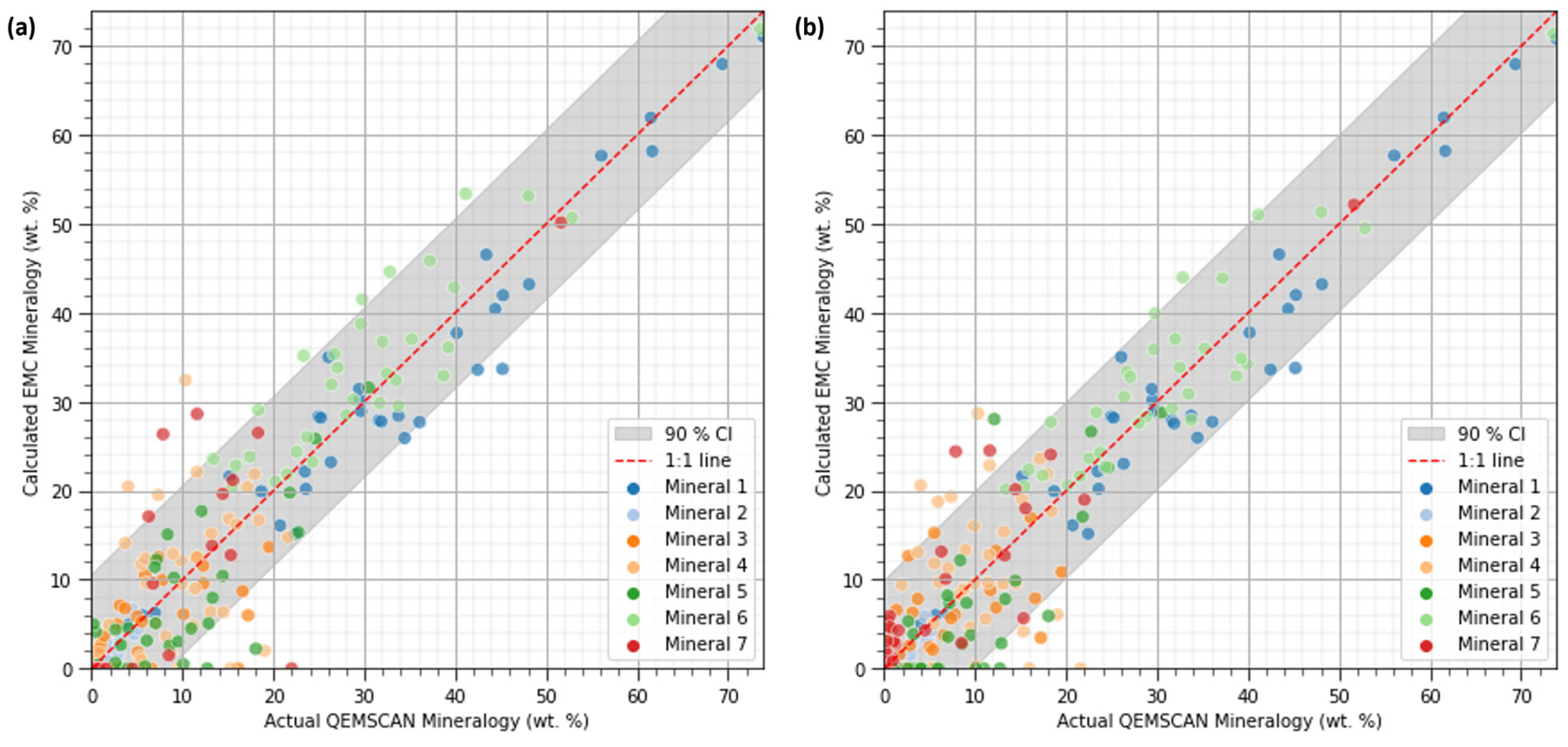 | EMC Approach | Percentage Data Within 90% CI (%) | Error (%) | R2 | RMSE | Uncertainty Classification | Mineral Resource Classification | Stage(s) of Mine Value Chain |
