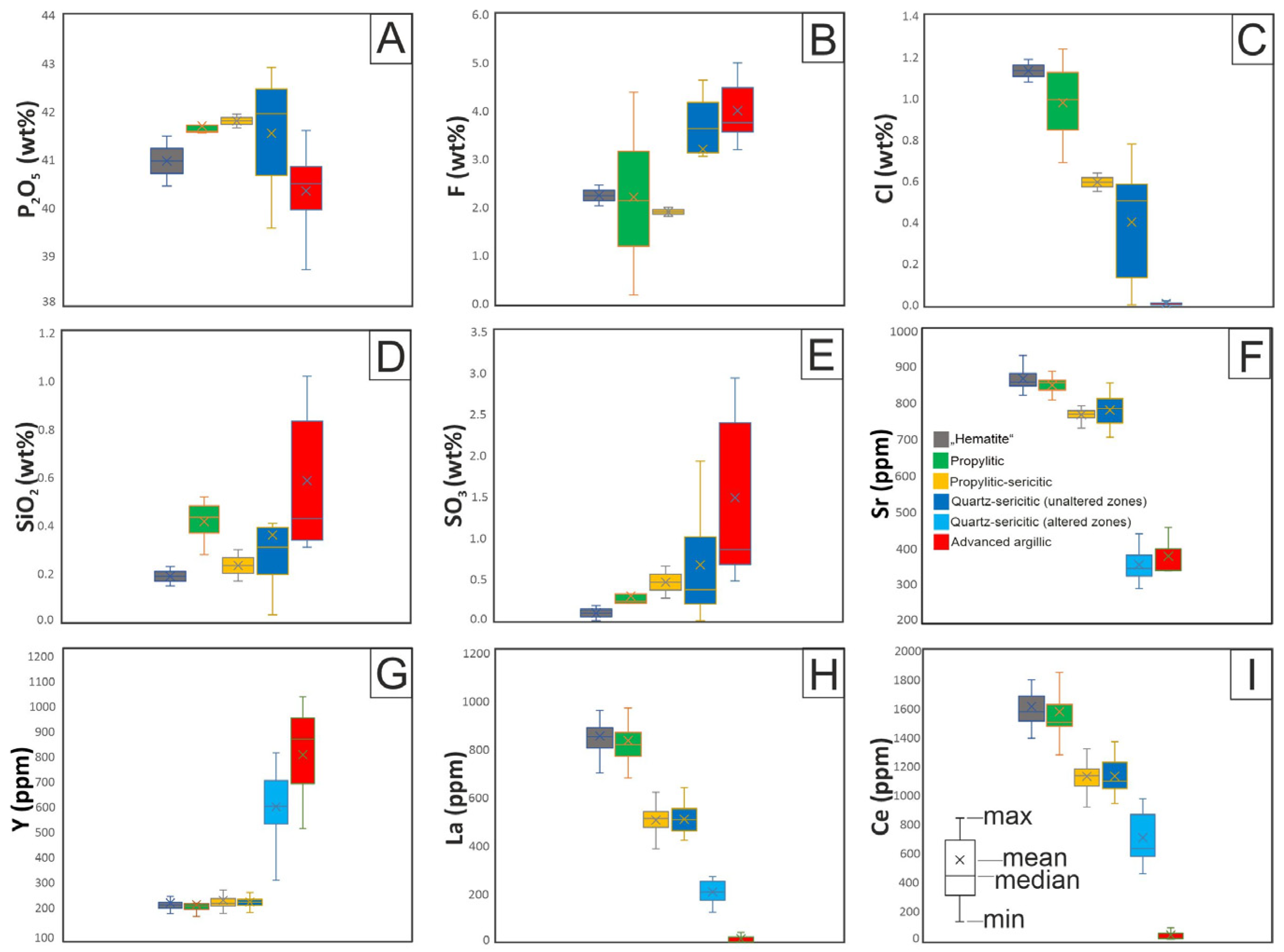 Geochemical and Textural Features of Apatites from Propylitic to Advanced Argillic Hydrothermal Alteration Zones in the Sharlo Dere Area, Chelopech Cu-Au Deposit, Bulgaria