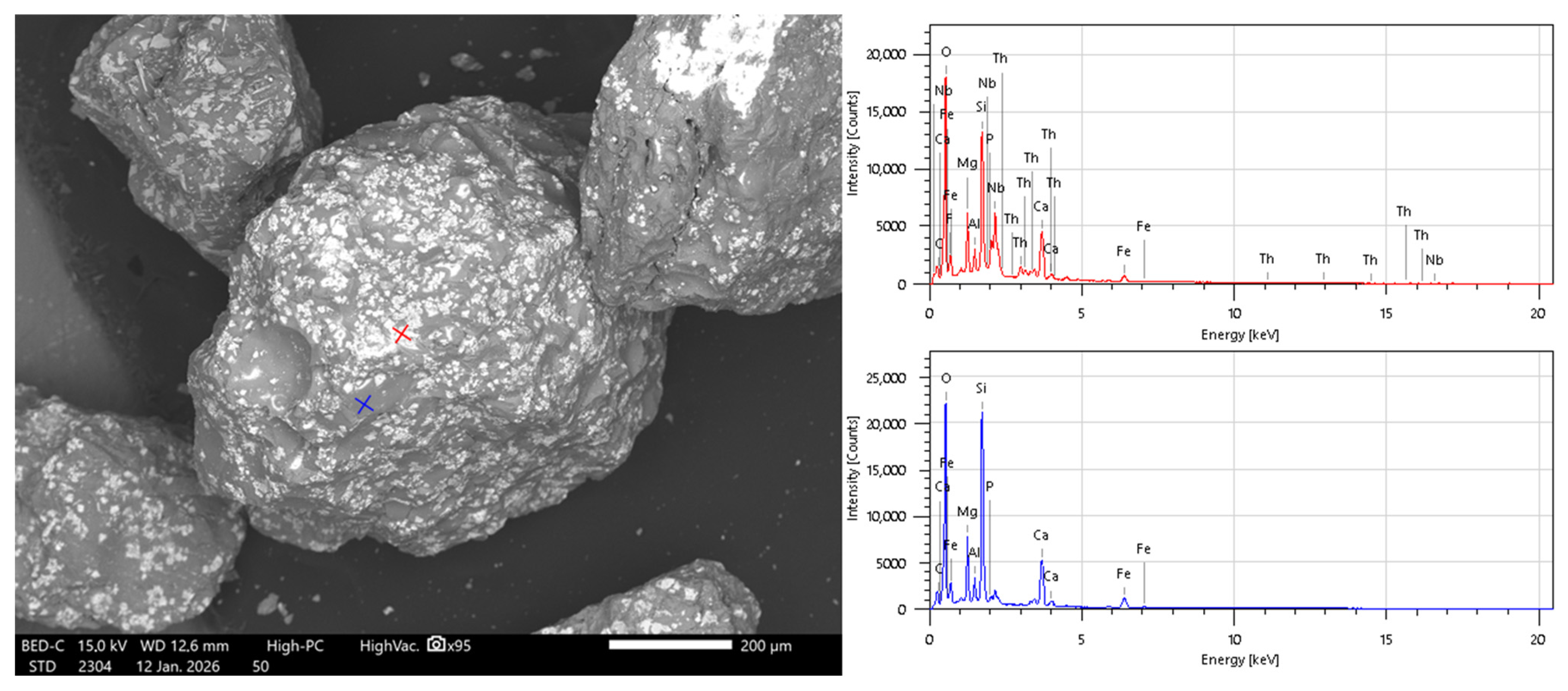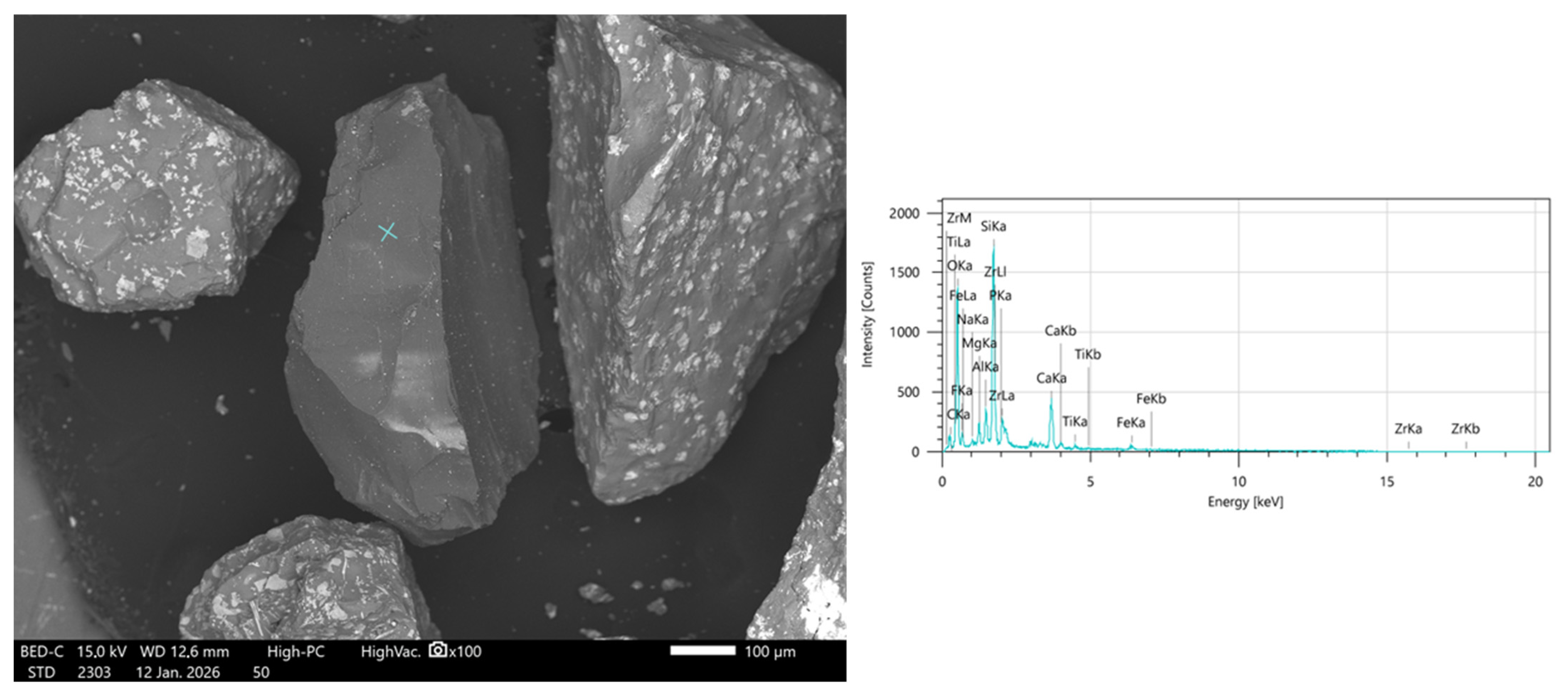 - Garjulli, F.; de S Gonçalves, G.A.; Tenório, J.A.S.; Espinosa, D.C.R. Characterization of Brazilian Tin Slag and Evaluation of Its Potential as a Secondary Source of Nb and Ta. Minerals 2025, 15, 1126. [Google Scholar] [CrossRef]