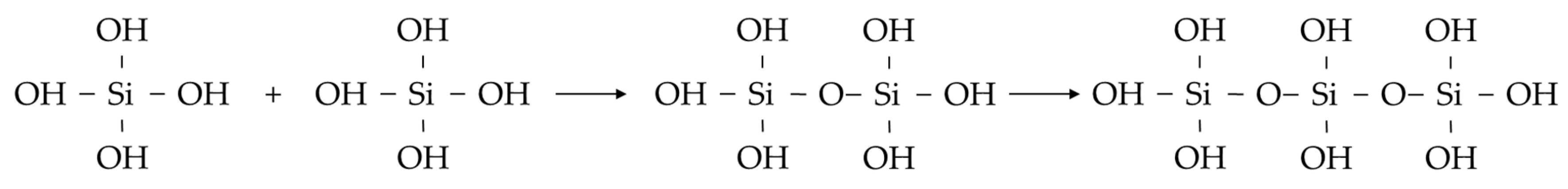 - Matinfar, M.; Nychka, J.A. A review of sodium silicate solutions: Structure, gelation, and syneresis. Adv. Colloid Interface Sci. 2023, 322, 103036. [Google Scholar] [CrossRef]