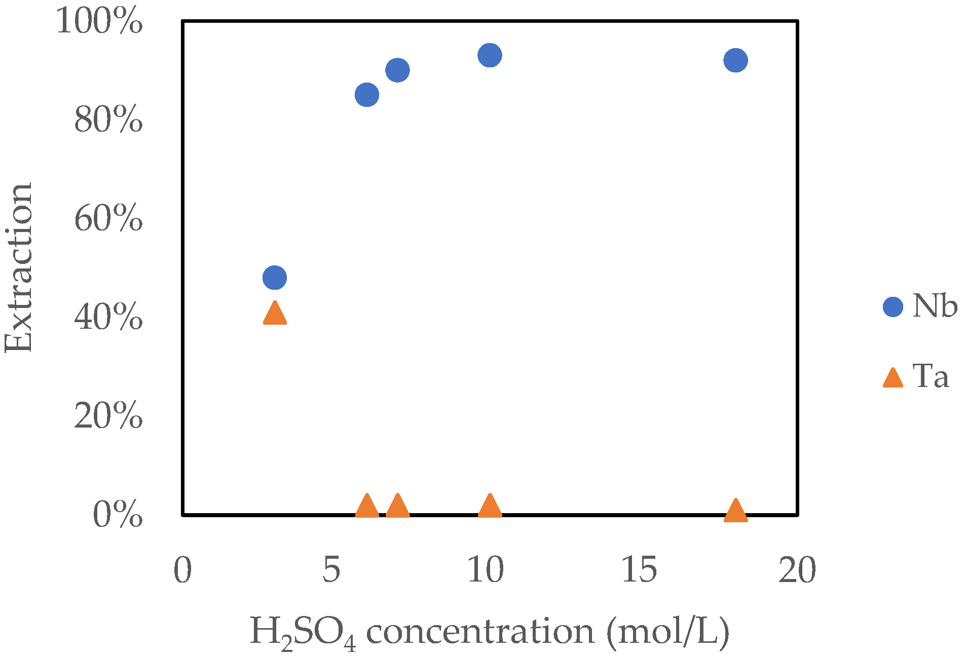 - Martinez-Gutierrez, G.O.; Machaca, D.M.C.; Garjulli, F.; Pereira, B.R.; Mayta-Armas, A.F.; Espinosa, D.C.R.; Tenório, J.A.S.; Baltazar, M.d.P.G. Extraction of Nb from Cassiterite Flotation Residues by Acid Calcination and Water Solubilization. J. Sustain. Metall. 2025, 12, 883–897. [Google Scholar] [CrossRef]