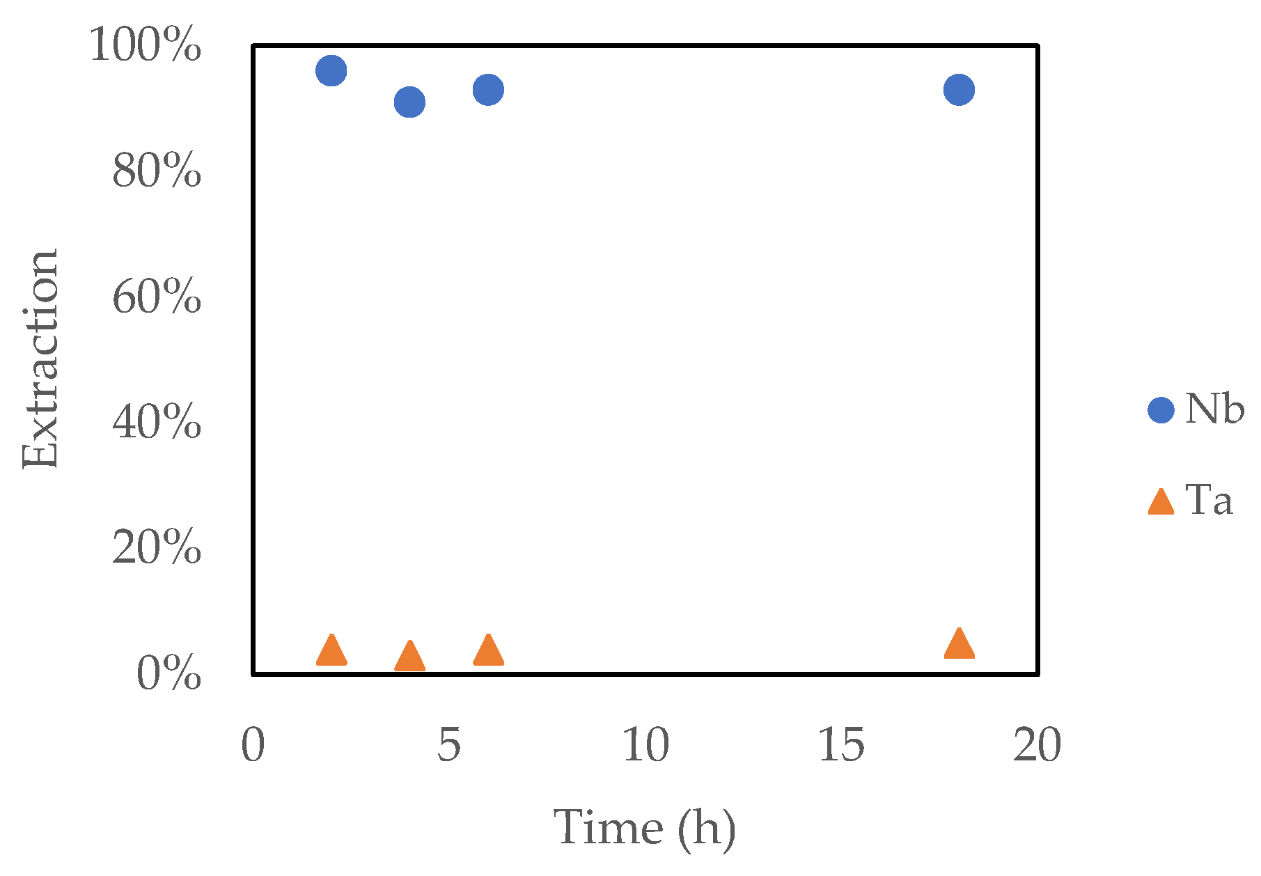 - Deblonde, G.J.P.; Chagnes, A.; Bélair, S.; Cote, G. Solubility of niobium(V) and tantalum(V) under mild alkaline conditions. Hydrometallurgy 2015, 156, 99–106. [Google Scholar] [CrossRef]
