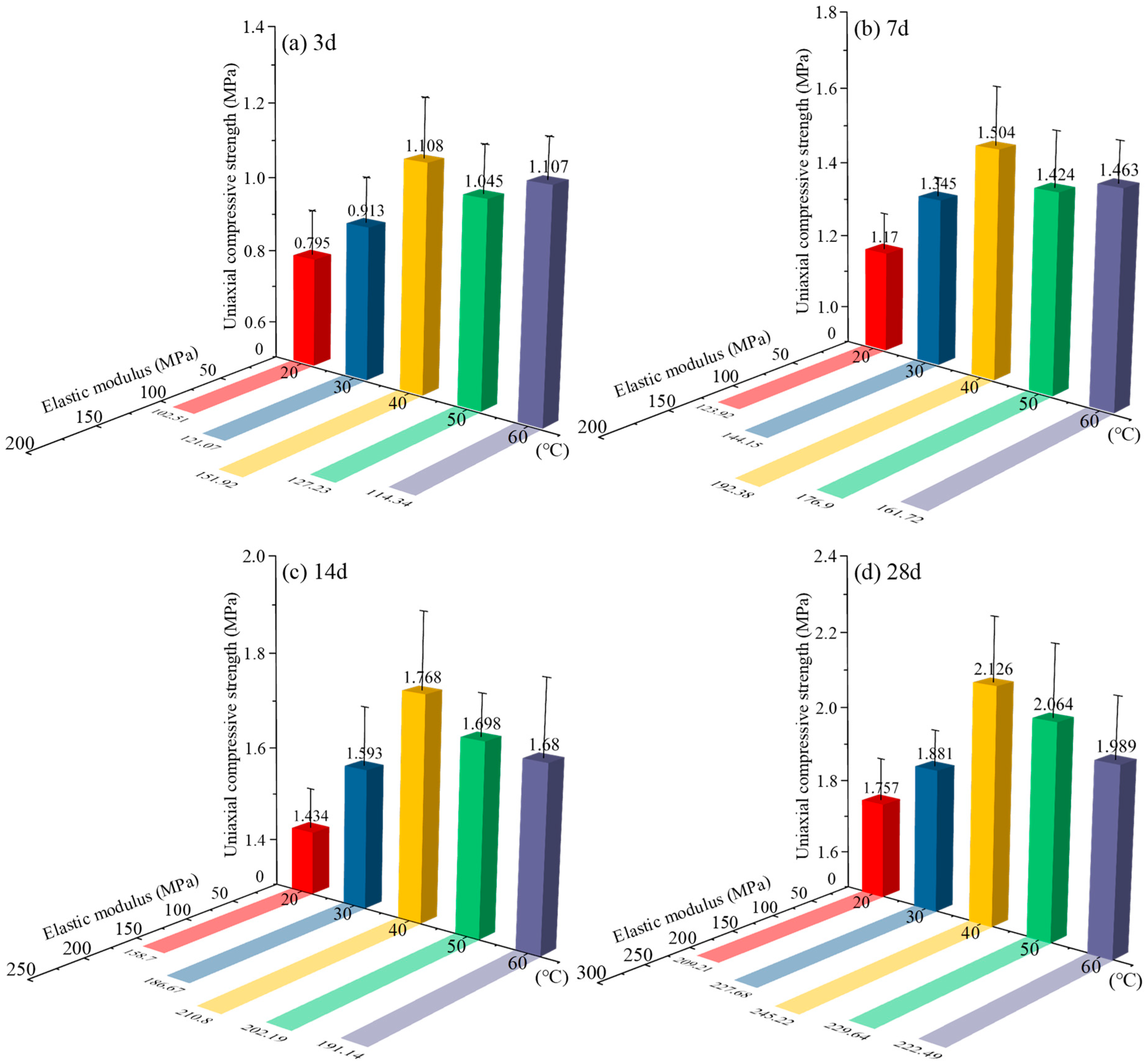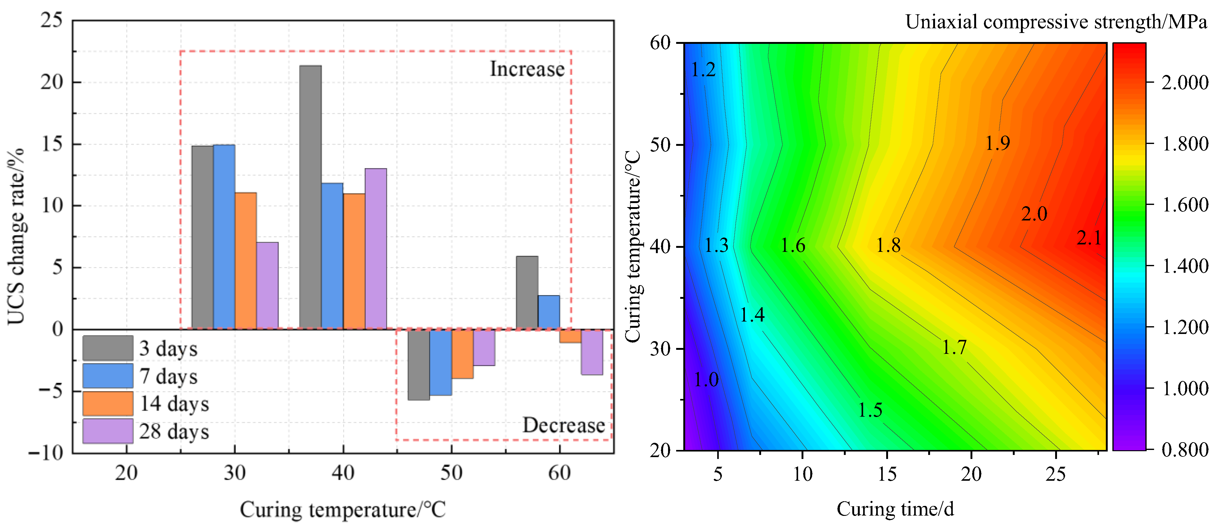| Curing Time | UCS (MPa) | Elastic Modulus (MPa) | ||||||||