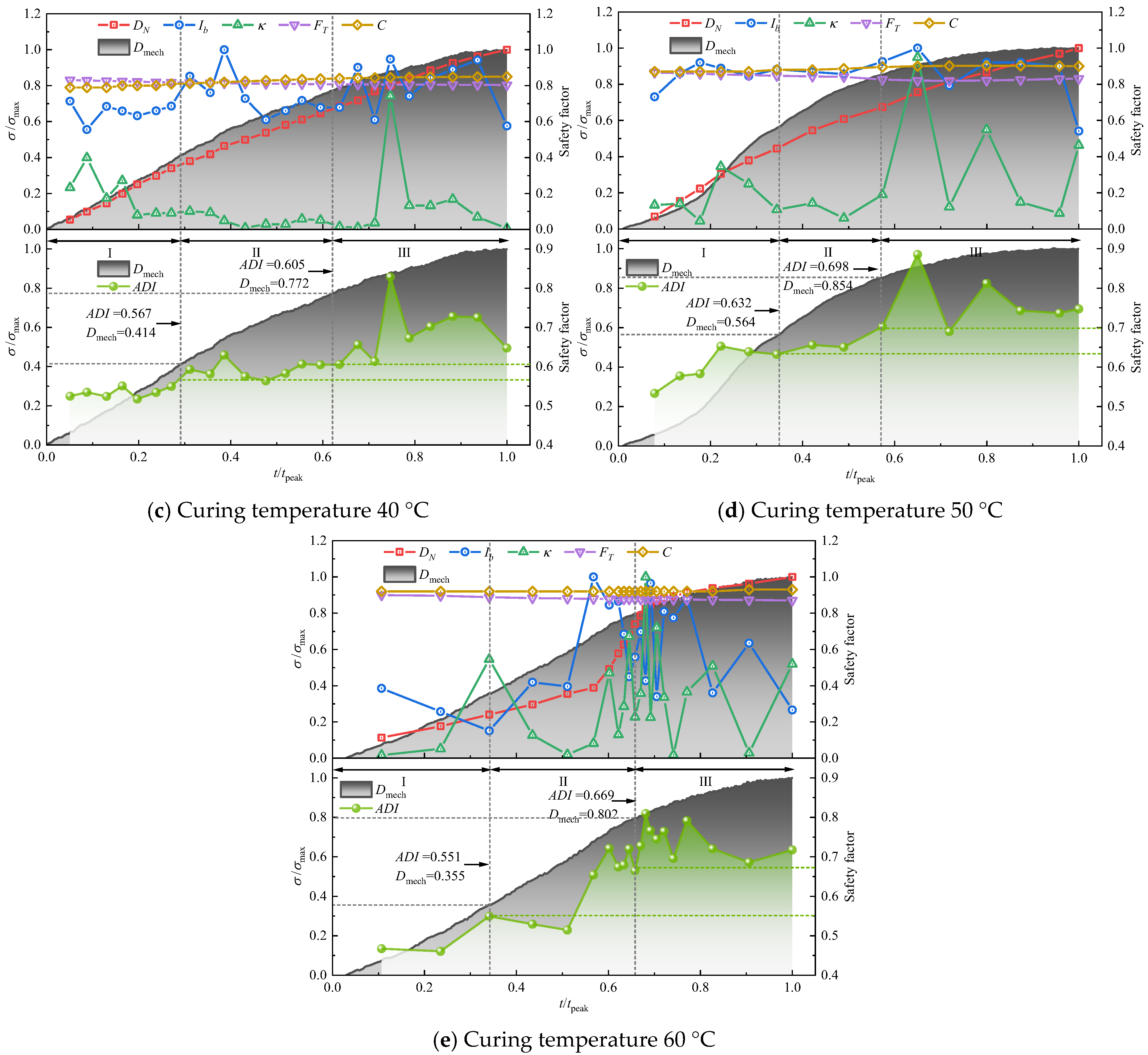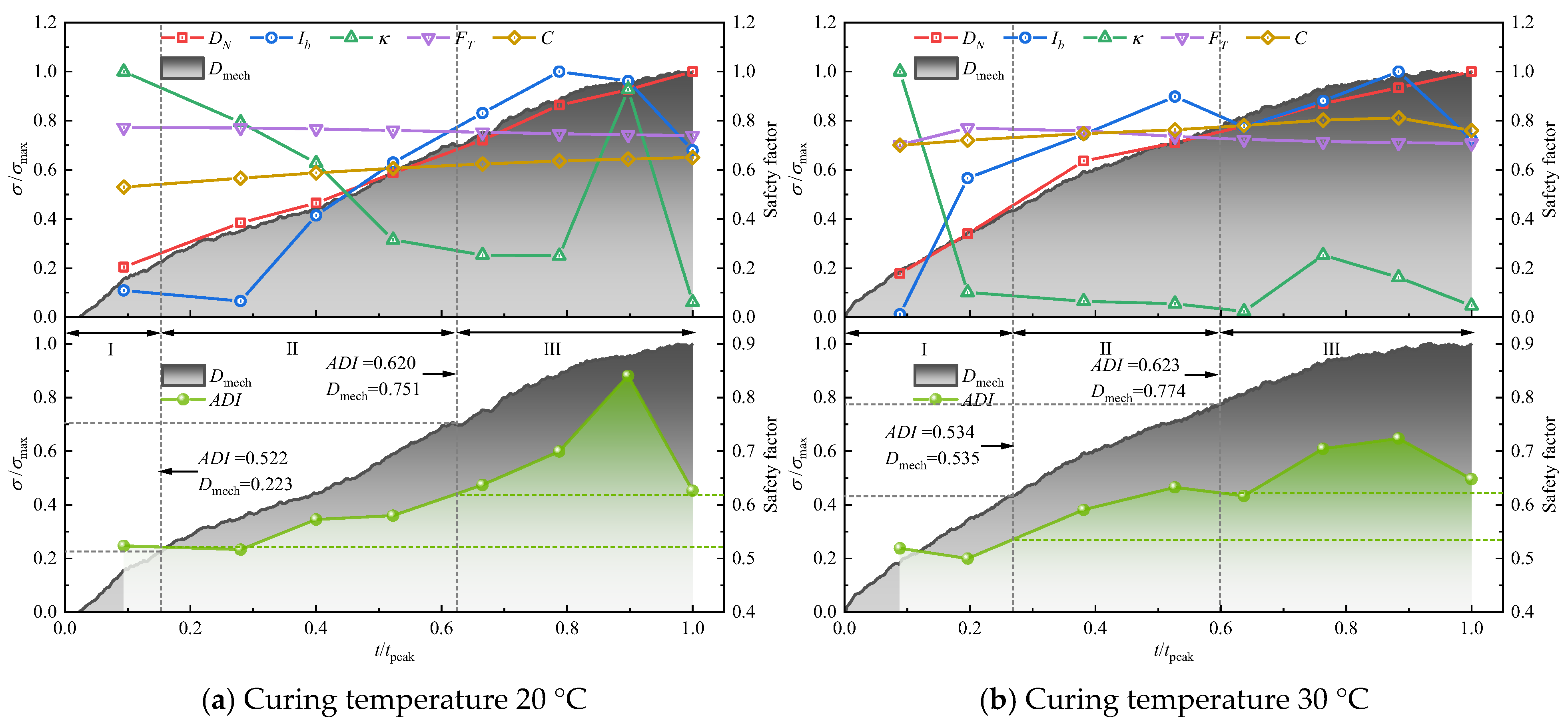 | Critical | ADI > 0.70 | Peak response | Macro-crack coalescence | Imminent failure risk |