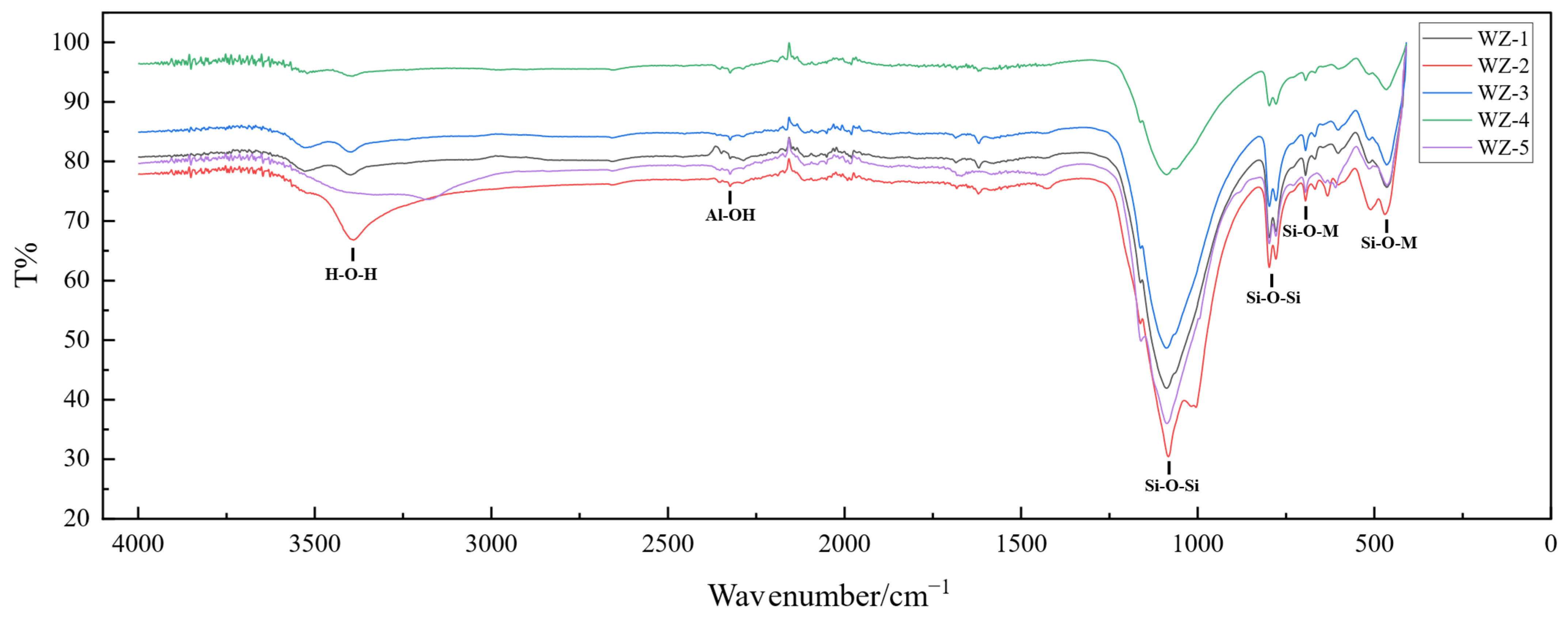 Fourier-transform infrared spectroscopy (FTIR) and X-ray photoelectron spectroscopy (XPS) were employed to characterize black shale bioleaching residues. These analytical techniques elucidated critical alterations in vanadium valence states and bonding configurations—notably Si-O and Al-O bonds—to evaluate the mineralogical liberation of vanadium-bearing phases. The results are presented in