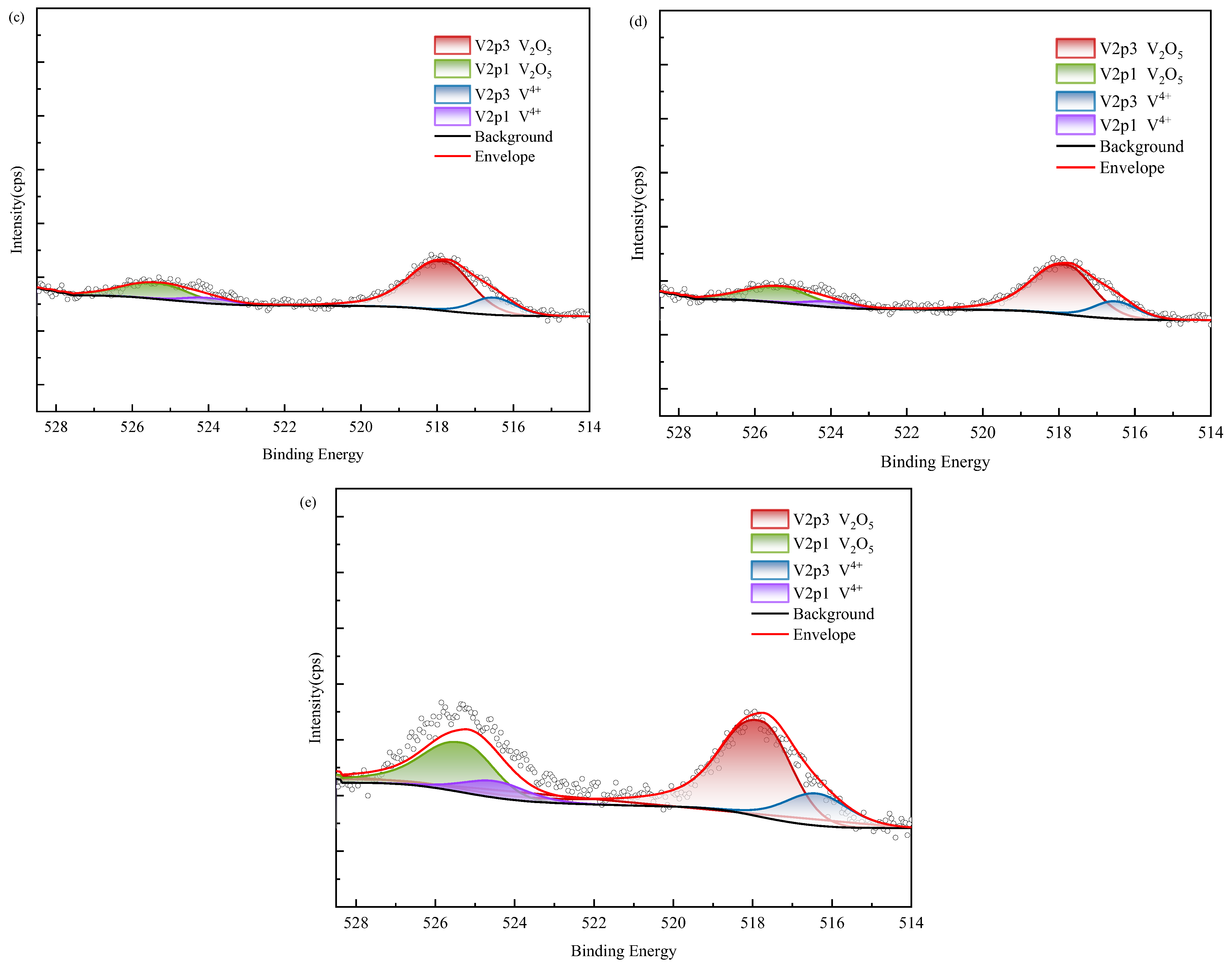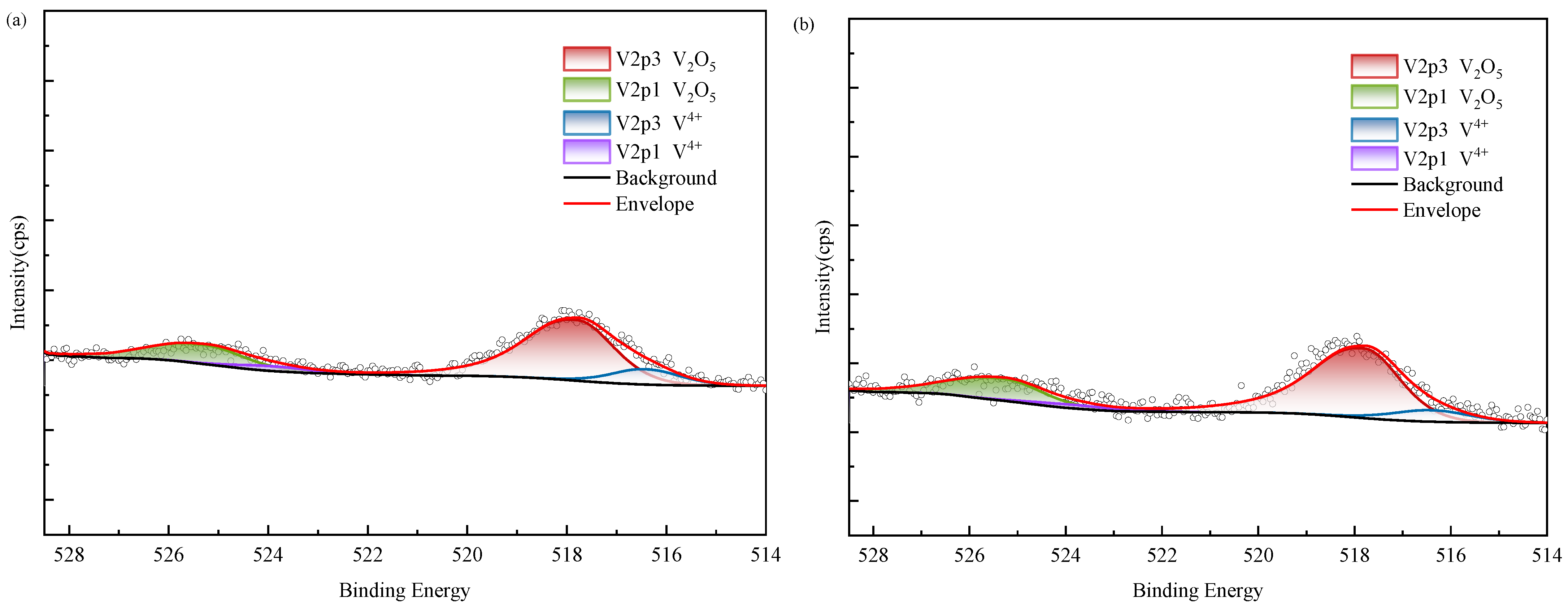 According to XPS results, vanadium in black shale raw ore mainly exists in the form of V(IV) and V(V). Tetravalent vanadium usually exists in the form of isomorphic substitution in vanadium mica, while pentavalent vanadium usually exists in the form of vanadium oxide. According to SEM analysis, it is present in oxide polymers. After biological leaching, the content of V(IV) decreases and is oxidized into V(V), which exhibits higher decomposability. The proportion of V(V) in the group with added ferrous is relatively higher than in other groups; however, correlation analysis indicated no corresponding increase in vanadium leaching amount, suggesting that the dissolution of oxidized vanadium remained incomplete.