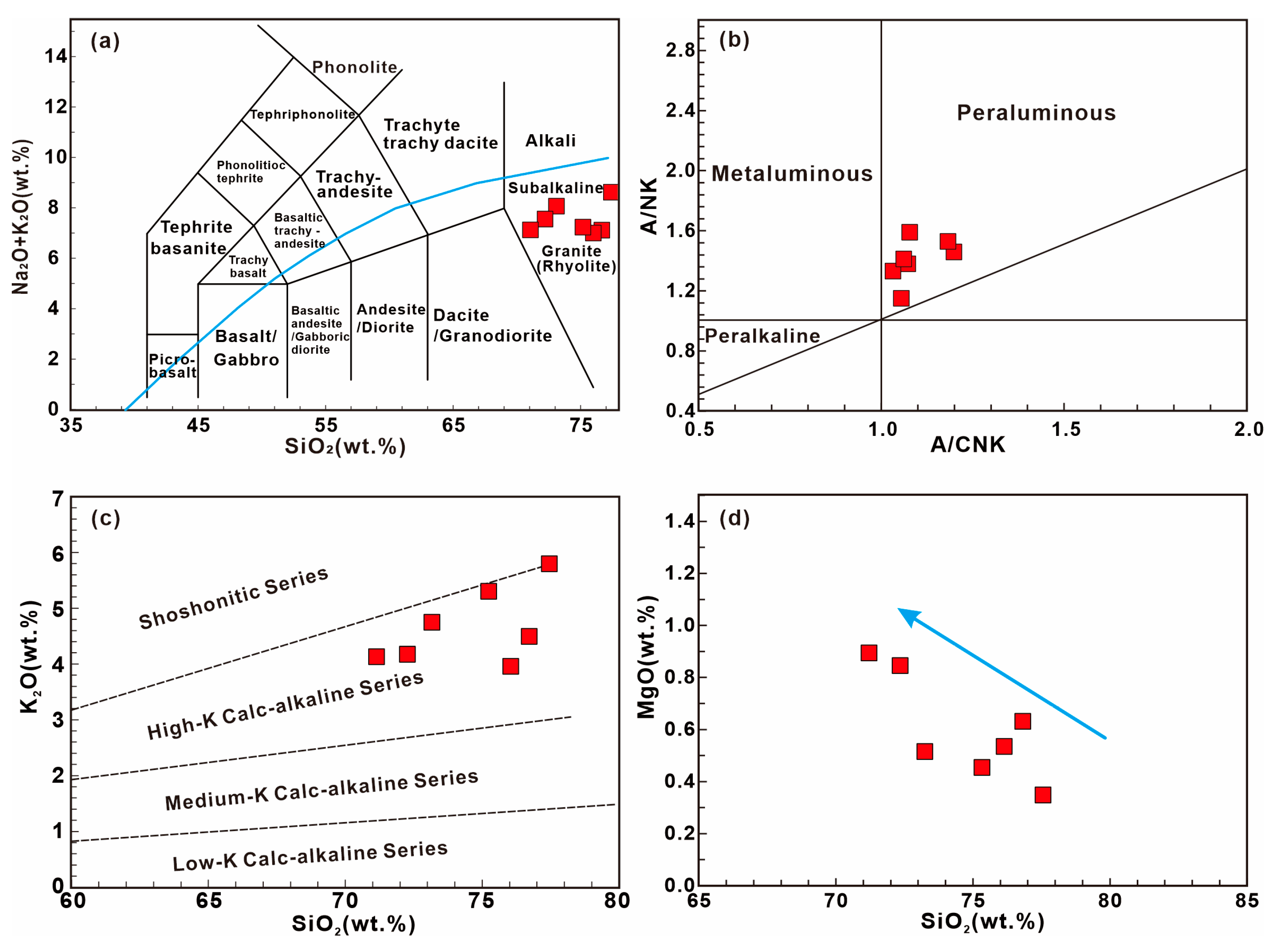 - Whalen, J.B.; Currie, K.L.; Chappell, B.W. A-type granites: Geochemical characteristics, discrimination and petrogenesis. Contrib. Mineral. Petrol. 1987, 95, 407–419. [Google Scholar] [CrossRef]