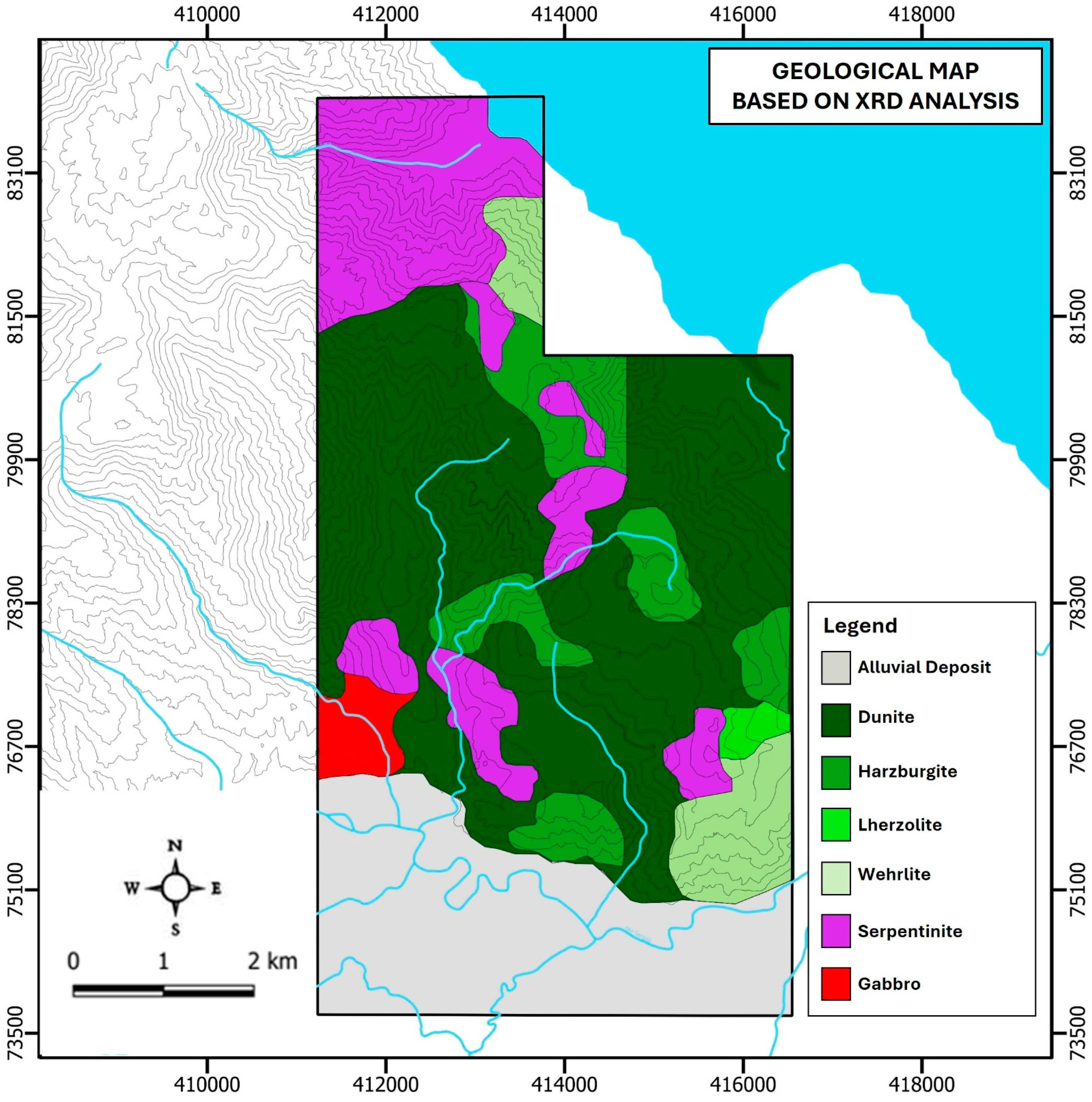 3.1.3. XRD Data Application in Mapping the Ultramafic Complex