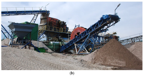 In total, 3 tests were performed, one in the laboratory scale, and two next in active open pits. Semi-industrial tests were carried out in the Osetnica pit, 20 km north of Złotoryja, and the Byczeń pit near Kamień Ząbkowicki. Detailed descriptions of the tests are provided in Section 2.1. The final tests were carried out on 17 May 2024 (shown in Figure 2). The technological system is shown schematically in Figure 3.