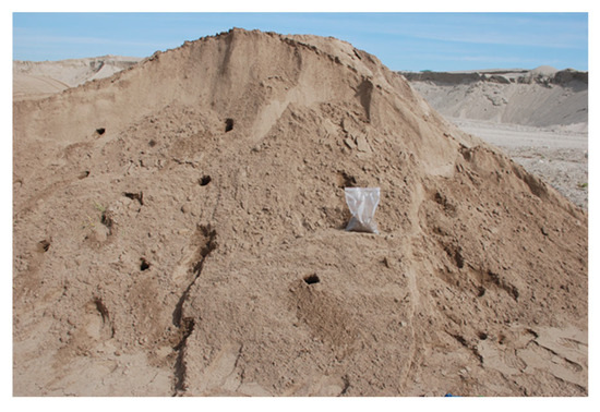 Sandy feed material from the Nysa Klodzka, Byczeń gravel deposit with the randomly oriented sampling points, 0.5 m deep.