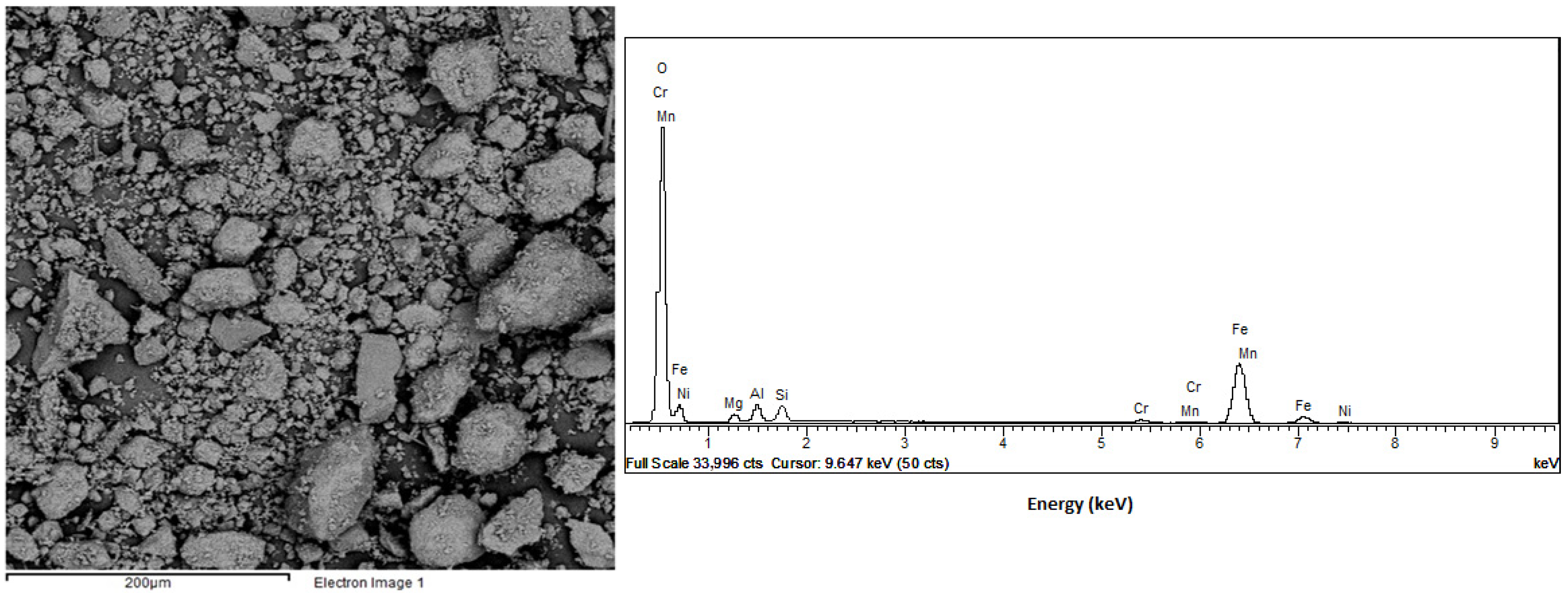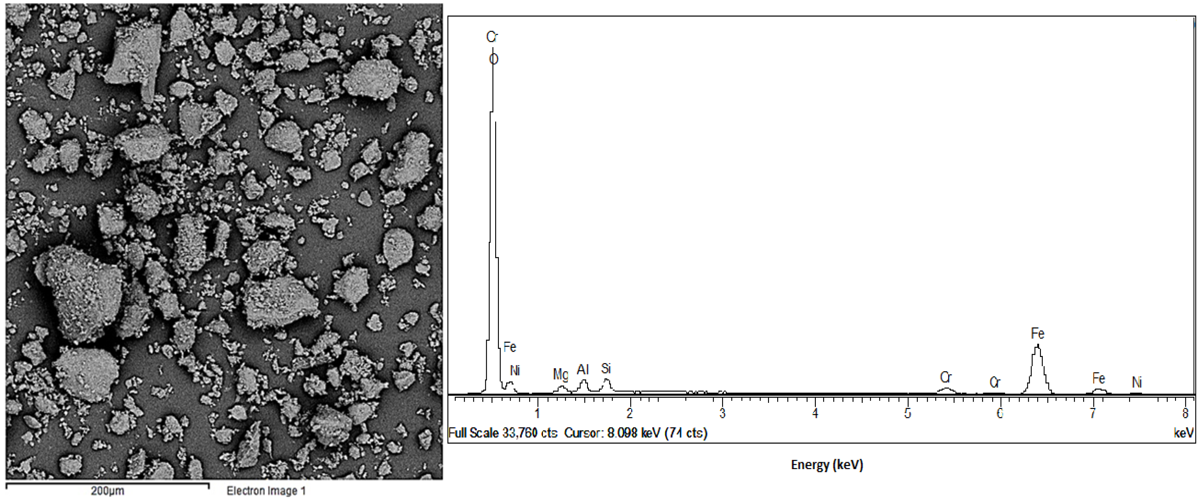 | Mass content of Ni and Fe, % (σ) | 1.17 and 39.32 (<0.42) |