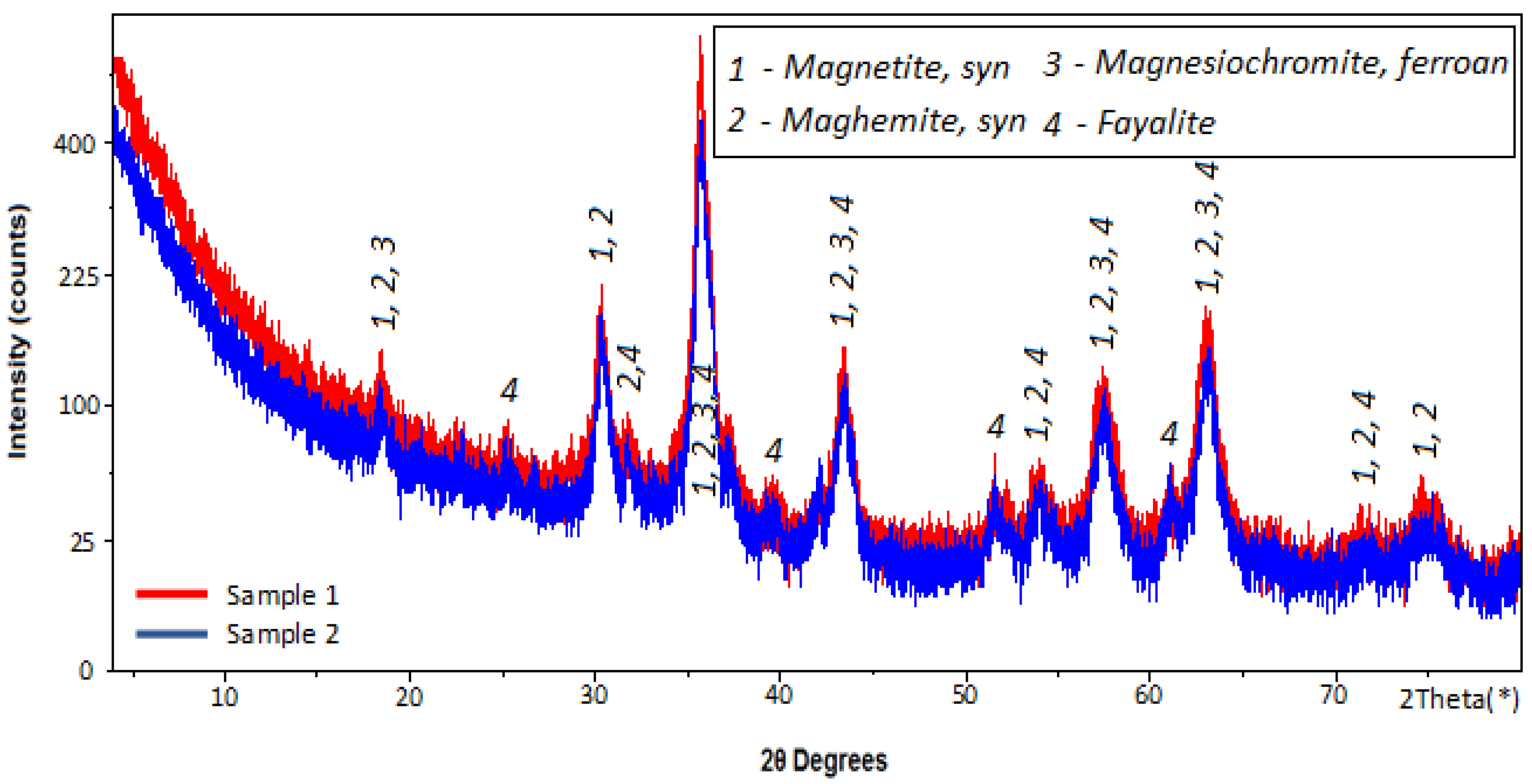 | Mass content of MgO, SiO2 and Al2O3, % (σ) | 2.83, 7.79 and 8.08 (<0.52) |