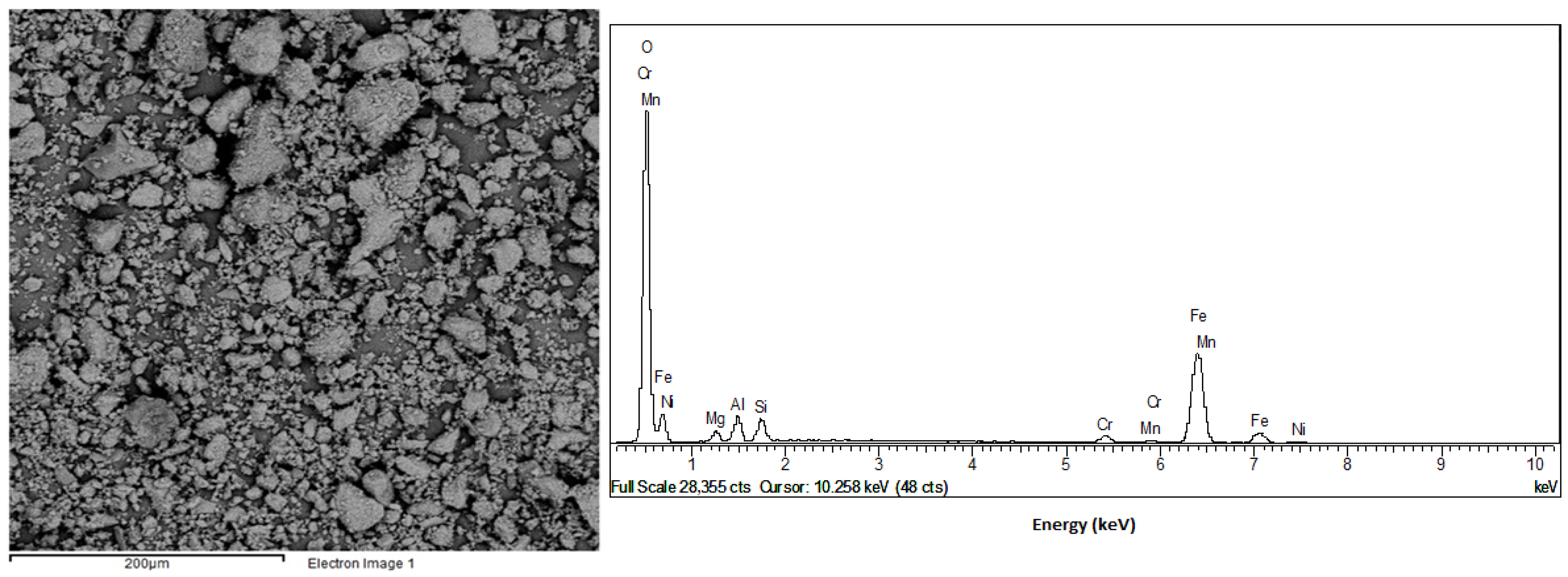 - Angulo Palma, H.J.; Terencio Guevara, P.L.; Legrá Legrá, A.; Videaux Arcia, L. Análisis especiales en un horno de reducción de níquel a escala de Planta Piloto. Tecnol. Química 2017, 37, 484–499. [Google Scholar]